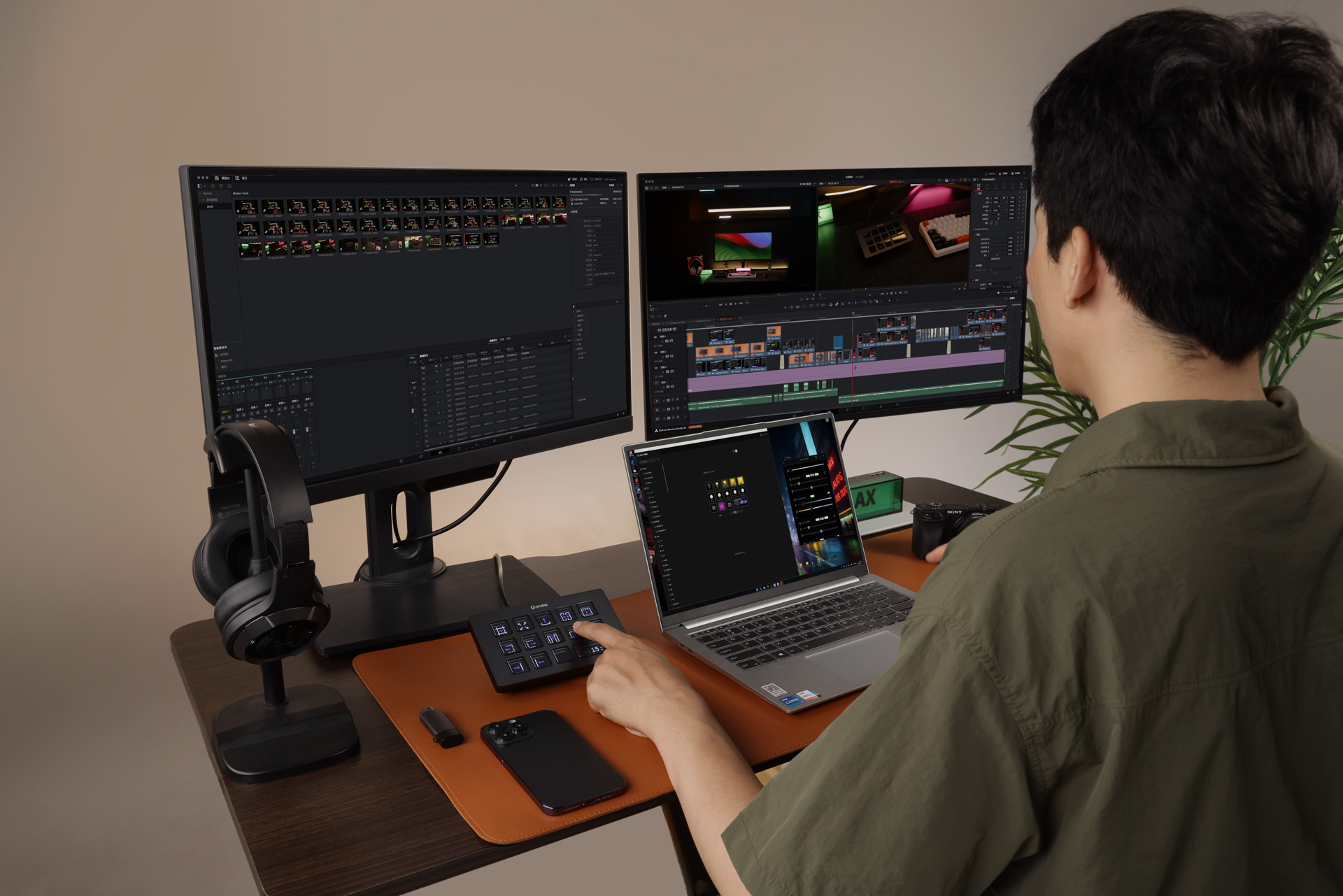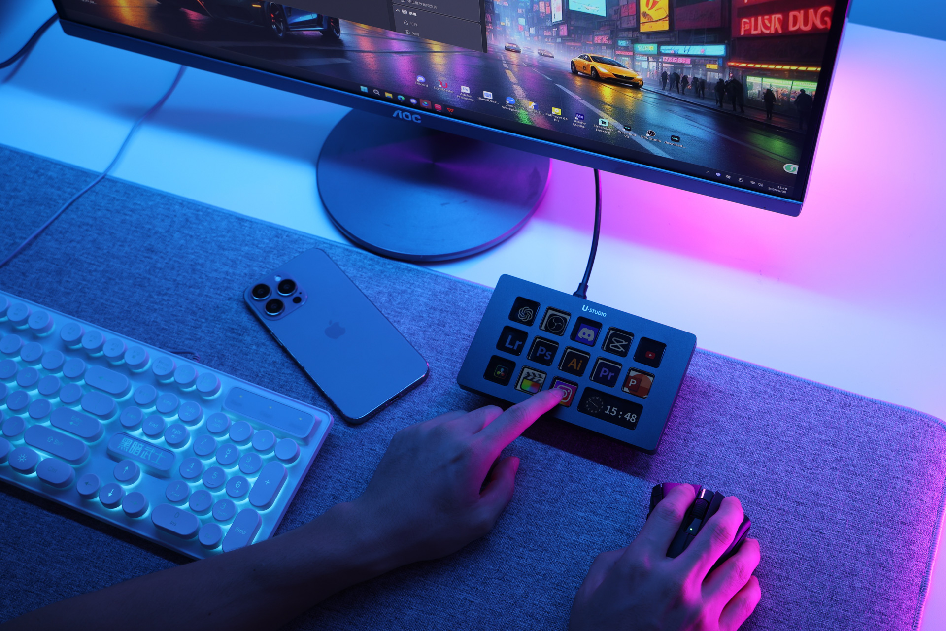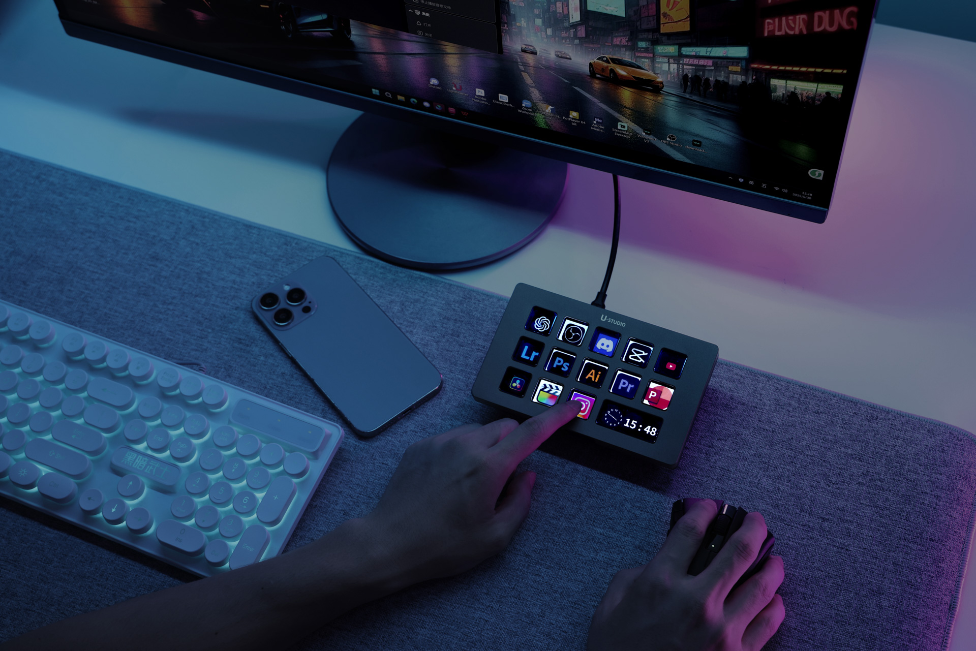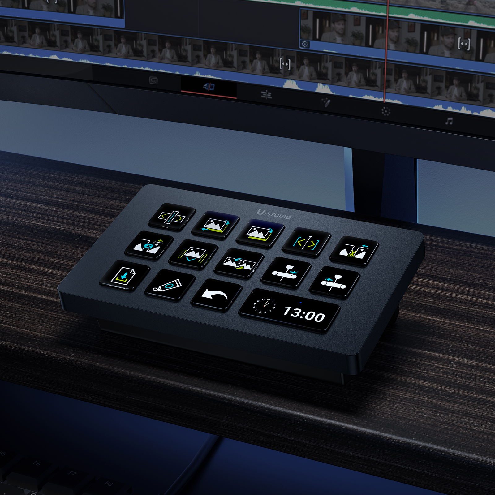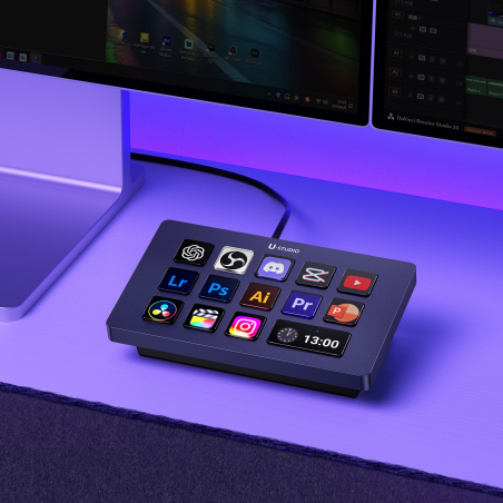 Konsola Ulanzi Stream Deck D200H to zaawansowany kontroler dla twórców, streamerów, montażystów i wszystkich, którzy chcą szybciej i wygodniej zarządzać aplikacjami oraz systemem (Windows/macOS). Urządzenie oferuje 13 konfigurowalnych przycisków LCD do obsługi programów, multimediów, oświetlenia i AI. Wbudowana stacja dokująca zapewnia szybkie ładowanie (100 W), porty USB-A oraz USB-C i sloty kart SD/microSD. Konsola współpracuje m.in. z Photoshopem, DaVinci, CapCut, OBS, TikTokiem, YouTube oraz narzędziami biurowymi. Dzięki stale rozwijanej platformie Ulanzi Studio Marketplace z dodatkami i aktualizacjami Ulanzi Stream Deck D200H to idealne narzędzie dla każdego, kto pracuje z komputerem i chce robić to szybciej, lepiej i skuteczniej.