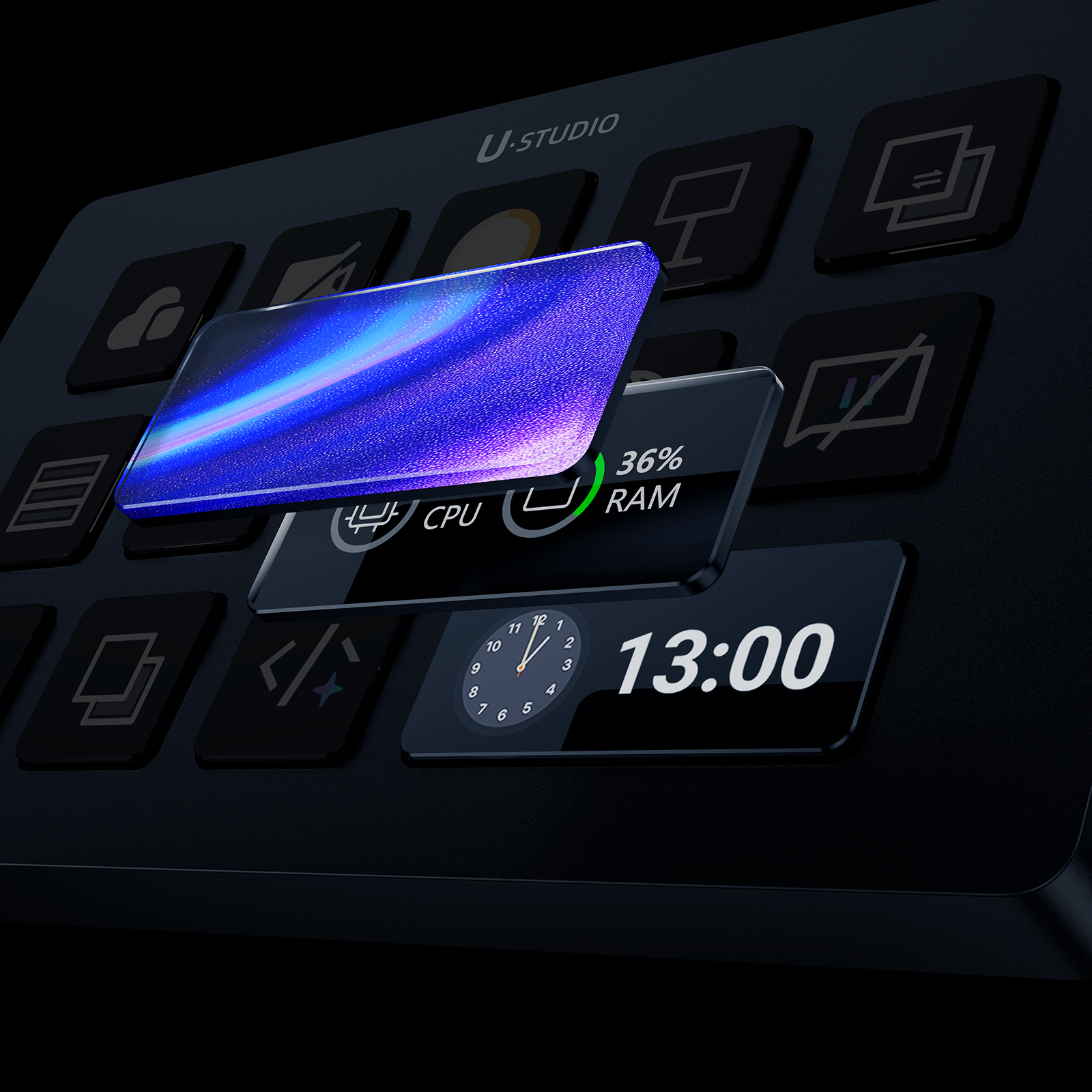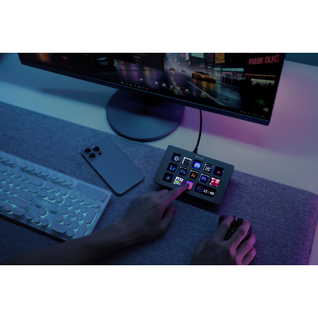 Stream Deck D200H to także powiew świeżości na Twoim biurku. Matowa aluminiowa obudowa, 13 kolorowych przycisków LCD oraz dodatkowe okno informacyjne wyświetlające m.in. godzinę, tło lub zużycie CPU, RAM i GPU doskonale prezentują się obok każdego komputera. Możesz przełączać widoki, włączyć tryb uśpienia z wygaszaczem ekranu i dostosować wygląd konsoli do własnego stylu pracy i wnętrza.