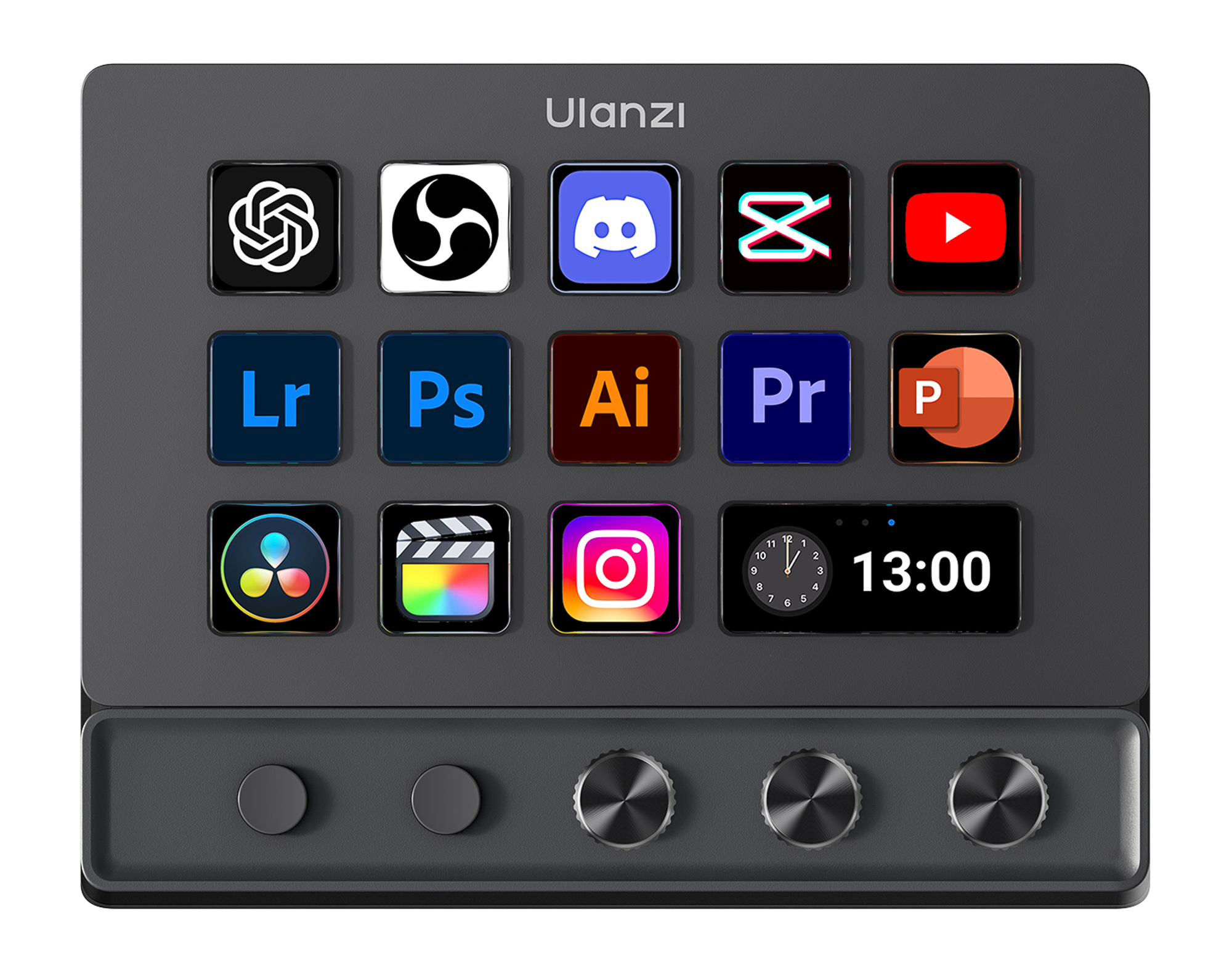 Ulanzi Creative Deck D200X oferuje rozbudowany zestaw elementów sterujących, który zapewnia dużą swobodę pracy i pozwala lepiej dopasować sposób obsługi do własnego workflow.