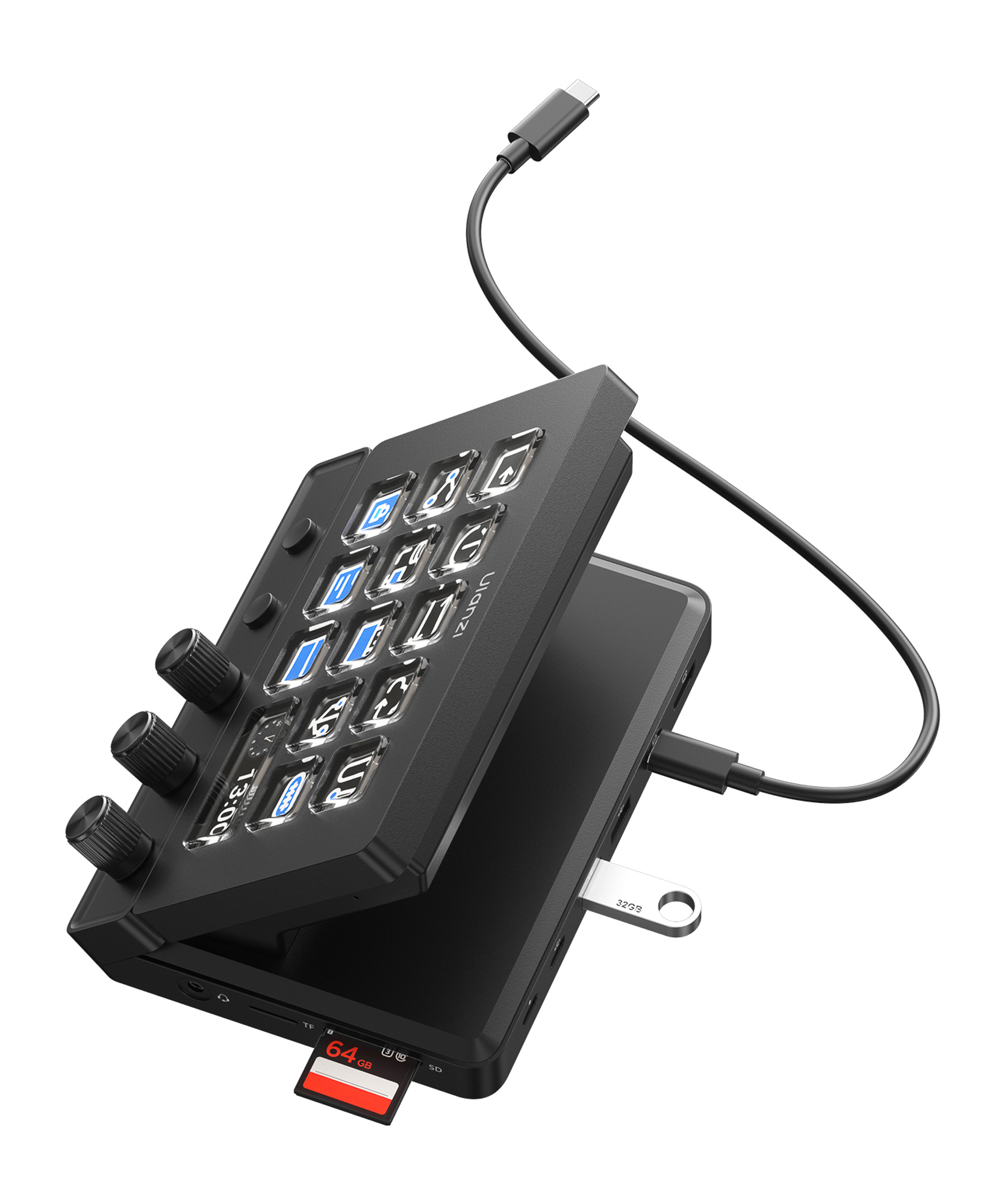 Ulanzi Creative Deck D200X to nie tylko konsola, ale również rozbudowana stacja dokująca 8 w 1, która pomaga uporządkować stanowisko pracy i ograniczyć liczbę dodatkowych adapterów.