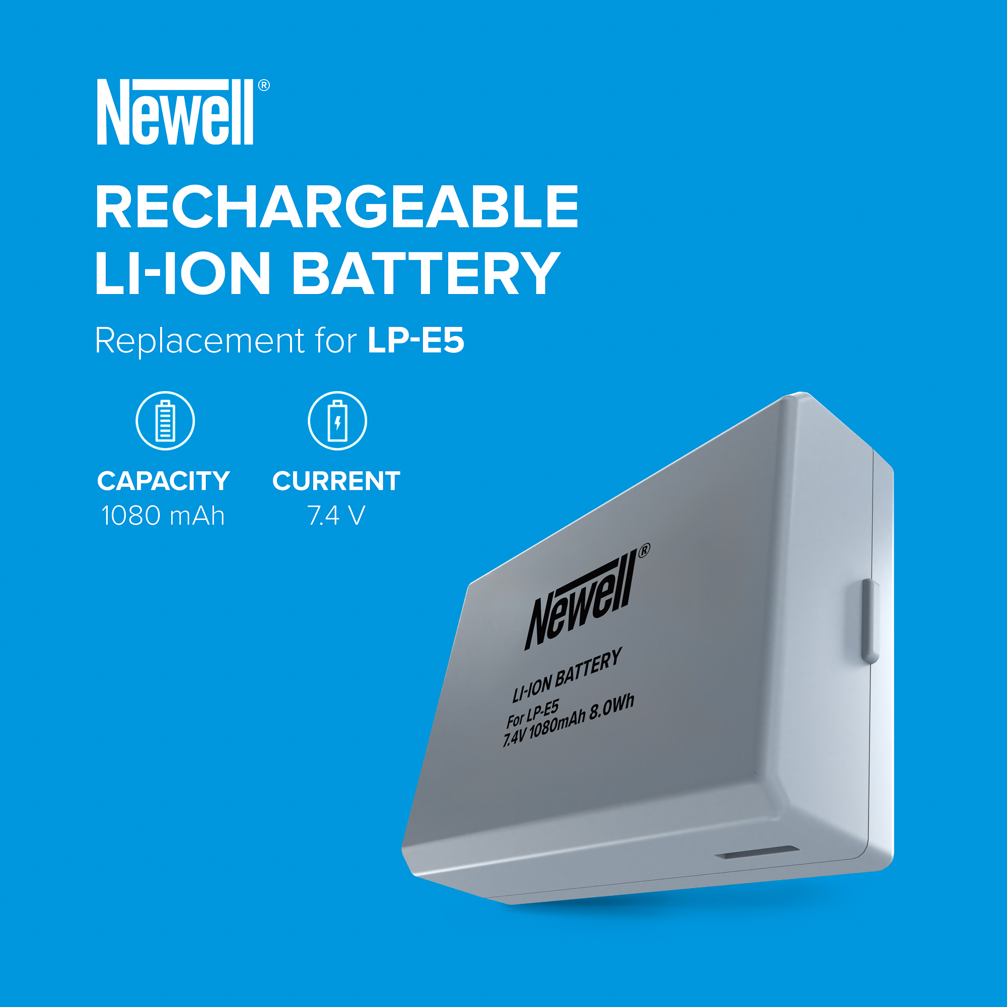 Newell LP-E5 to zamiennik akumulatora przeznaczony do aparatów fotograficznych Canon. Zastosowano w nim najlepszej jakości ogniwa, inteligentny system regulujący proces ładowania oraz zabezpieczenia przed przegrzaniem, przeciążeniem oraz przeładowaniem. Akumulator oferuje 1080 mAh pojemności. Możesz doładowywać go w dowolnym momencie, nie martwiąc się o wystąpienie tzw. efektu pamięci. Ten zamiennik to idealny wybór dla amatorów, pasjonatów i profesjonalistów, którzy cenią sobie jakość, bezpieczeństwo oraz zaawansowaną technologię.