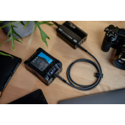 Akumulator Newell BP-95 LCD V-Mount nie tylko dostarczy energię do Twojego sprzętu filmowego i fotograficznego. Urządzenie świetnie sprawdzi się jako potężny power bank. Dzięki portom USB zyskujesz możliwość ładowania szerokiej gamy urządzeń elektronicznych w podróży, w plenerze lub w dowolnym innym miejscu. Za pomocą wyjścia USB-C, wspierającego technologię Power Delivery (maks. 65 W), możesz ładować smartfony, tablety, laptopy, a nawet niektóre modele MacBooków. Na pokładzie nie zabrakło też tradycyjnego portu USB-A. Pozwoli on skutecznie naładować urządzenia starszej generacji (m.in. przenośne głośniki, słuchawki, smartwatche lub aparaty fotograficzne). Niezależnie od tego, gdzie jesteś, ten akumulator zapewni Ci i szybkie ładowanie zgodne z setkami różnych urządzeń.