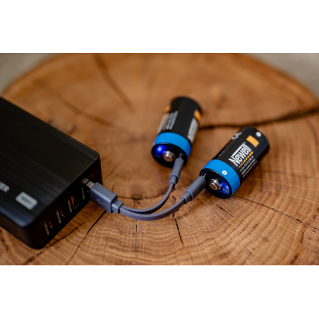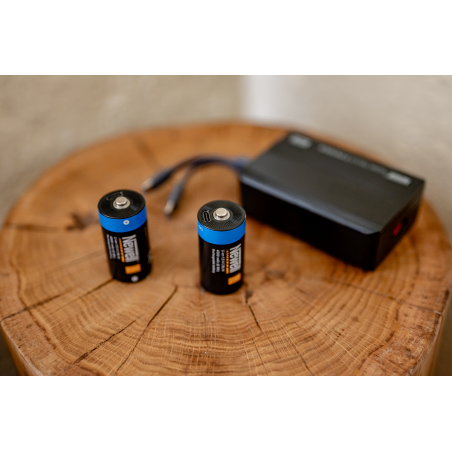 - zestaw 2 akumulatorów litowo-jonowych C/R14 z portami USB-C