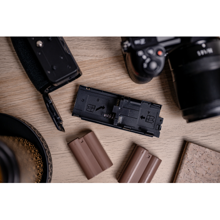 Battery Pack Newell MB-N14 to niezawodne wsparcie podczas długich dni zdjęciowych. Umożliwia montaż dwóch akumulatorów EN-EL15C (kompatybilny także z wersjami EN-EL15A/B), co znacząco wydłuża czas pracy aparatu. Grip obsługuje sekwencyjne zużycie energii – najpierw wyczerpuje akumulator z komory A, a dopiero potem przechodzi do komory B. Dzięki temu możesz wymienić pierwszy akumulator „na gorąco”, bez przerywania nagrywania czy fotografowania.