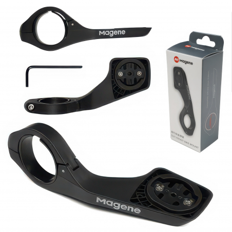 Aerodynamiczny uchwyt Magene to akcesorium przeznaczone do kierownic o średnicy 31,8 mm, kompatybilne ze wszystkimi modelami komputerów rowerowych marki. Wysunięcie licznika przed mostek poprawia kąt widzenia ekranu i doskonale współgra nie tylko z rowerami szosowymi aero. Mocowanie bazuje na obejmie zabezpieczonej śrubą. Aby zablokować licznik w uchwycie wystarczy jeden ruch ręką. Cała konstrukcja gwarantuje optymalną pozycję komputera rowerowego, nawet podczas jazdy po nierównej nawierzchni. Gumowa podkładka między obejmą a kierownicą dodatkowo chroni lakier i zwiększa przyczepność. Uchwyt wykonano z wysokiej jakości tworzywa sztucznego.