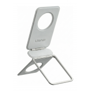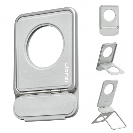 Statyw Ulanzi PS01 to ultrakompaktowy uchwyt magnetyczny do smartfonów, który waży zaledwie 63 g, a po złożeniu przypomina wymiarami kartę kredytową. Jego grubość wynosi zaledwie 7 mm. Dzięki magnetycznemu mocowaniu MagSafe błyskawicznie przyczepisz go do telefonu. Aluminiowa rama pokryta miękką skórą syntetyczną zapewnia wygodny chwyt i elegancki wygląd. Urządzenie działa w dwóch trybach – jako podstawka lub ministatyw. Magnes ulokowany z tyłu pozwala podłączyć kolejne akcesoria MagSafe, np. lampkę LED. Niewielkie wymiary sprawiają, że zmieści się w kieszeni. Otwór montażowy umożliwia zawieszenie na gałęzi, wieszaczku lub uchwycie w samolocie. To idealne rozwiązanie dla vlogerów, podróżników i osób pracujących zdalnie.