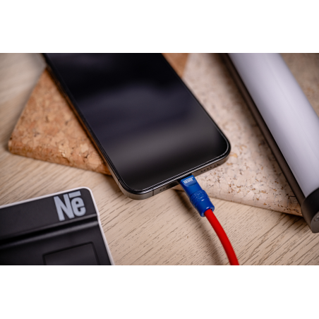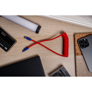 - kabel Newell USB-C - USB-C 100 W, 1,5 m, silikonowy, spiralny, czerwono-granatowy