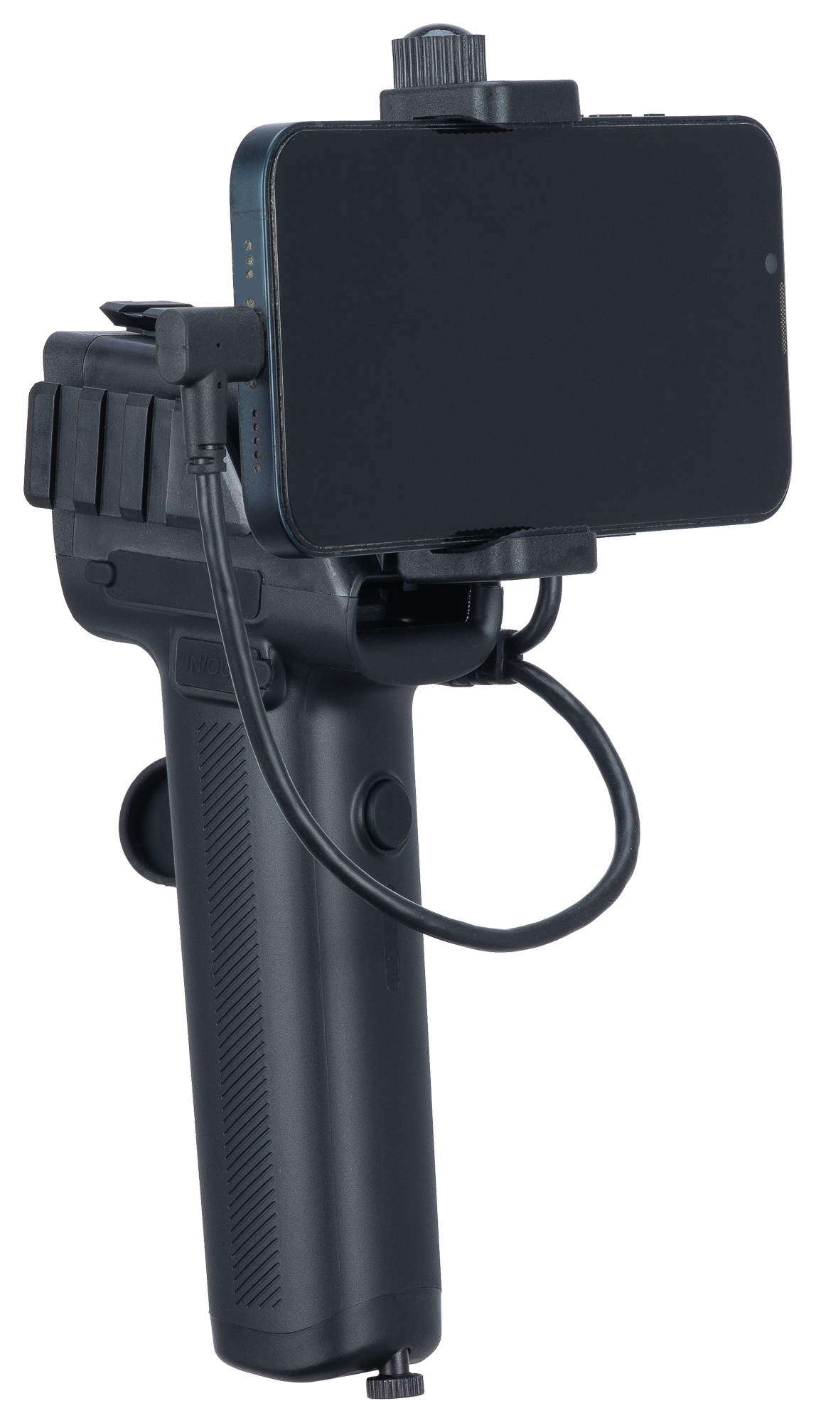W zestawie z kamerą znajduje się specjalny taktyczny uchwyt ArmorX, który pełni jednocześnie funkcję rączki, stacji dokującej i źródła zasilania. Zaprojektowano ją z myślą o wymagających warunkach terenowych. W jej górnej części umieszczono specjalną obudowę, w której bezpiecznie zadokujesz kamerę Thermal Master X2. Zintegrowany uchwyt na smartfon pozwala stworzyć stabilny, kompaktowy zestaw do obserwacji. Dwie szyny Picatinny umożliwiają montaż akcesoriów – takich jak dalmierz lub latarka. Rączkę wyposażono w 2 przyciski funkcyjne ułatwiające pracę w terenie. Do dyspozycji są też dwa porty USB-C – jeden pozwoli podłączyć się do kamery, drugi posłuży np. do ładowania telefonu. Całość zasilana jest wymiennym akumulatorem 21700 (w zestawie), który zapewnia długi czas pracy i sprawdzi się również jako awaryjne źródło zasilania.