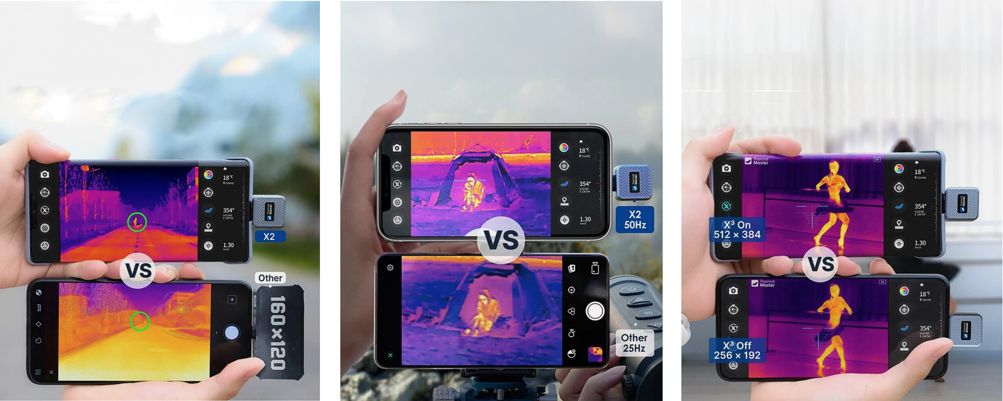 Thermal Master X2 to pierwsza na świecie kamera termowizyjna do smartfona, która oferuje odświeżanie obrazu na poziomie aż 50 Hz. Taka częstotliwość sprawia, że nawet szybki ruch – przebiegające zwierzę, lecący ptak czy poruszający się pojazd – jest rejestrowany z wyjątkową płynnością i bez efektu rozmycia. Dzięki temu użytkownik zyskuje pełną kontrolę nad sytuacją w czasie rzeczywistym, bez irytujących opóźnień typowych dla tańszych konstrukcji. To ogromna przewaga w terenie – zarówno dla myśliwych, służb ratowniczych, jak i pasjonatów obserwacji przyrody, którzy muszą polegać na szybkim i precyzyjnym rozpoznaniu celu.
