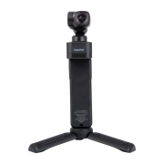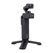Pilot do kamery Feiyu Pocket 3 to nie tylko wszechstronny kontroler zdalnego sterowania. Urządzenie może też pełnić funkcję ergonomicznego uchwytu. Wystarczy wsunąć kamerę na specjalną szynę i... gotowe. Możesz teraz trzymać urządzenie w dłoni jak typowy 3-osiowy gimbal, mając pod ręką zarówno podgląd, jak i ergonomiczny joystick oraz dostęp do ustawień urządzenia. Ponadto, dzięki wbudowanemu gwintowi 1/4", pilot wraz z kamerą może zostać zainstalowany na statywie, co świetnie sprawdzi się, gdy będziesz korzystać z funkcji śledzenia ruchu.