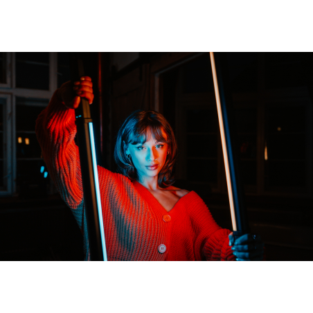 Jak przystało na miecz świetlny, Newell RGB Kathi Pro II oferuje wygodną rękojeść, która perfekcyjnie leży w dłoni. Nie oznacza to jednak, że praca "z ręki" to jedyne rozwiązanie. Lampę z powodzeniem zainstalujesz na statywie z gwintem 1/4", a dzięki aplikacji mobilnej, będziesz mógł/mogła sterować urządzeniem zdalnie. Miecz świetlny może stać się częścią scenografii lub znajdować się w trudno dostępnym miejscu. Aplikacja z funkcją światłomierza pozwoli wygodnie przełączać się między różnymi kolorami, a także sterować jasnością i efektami specjalnymi.