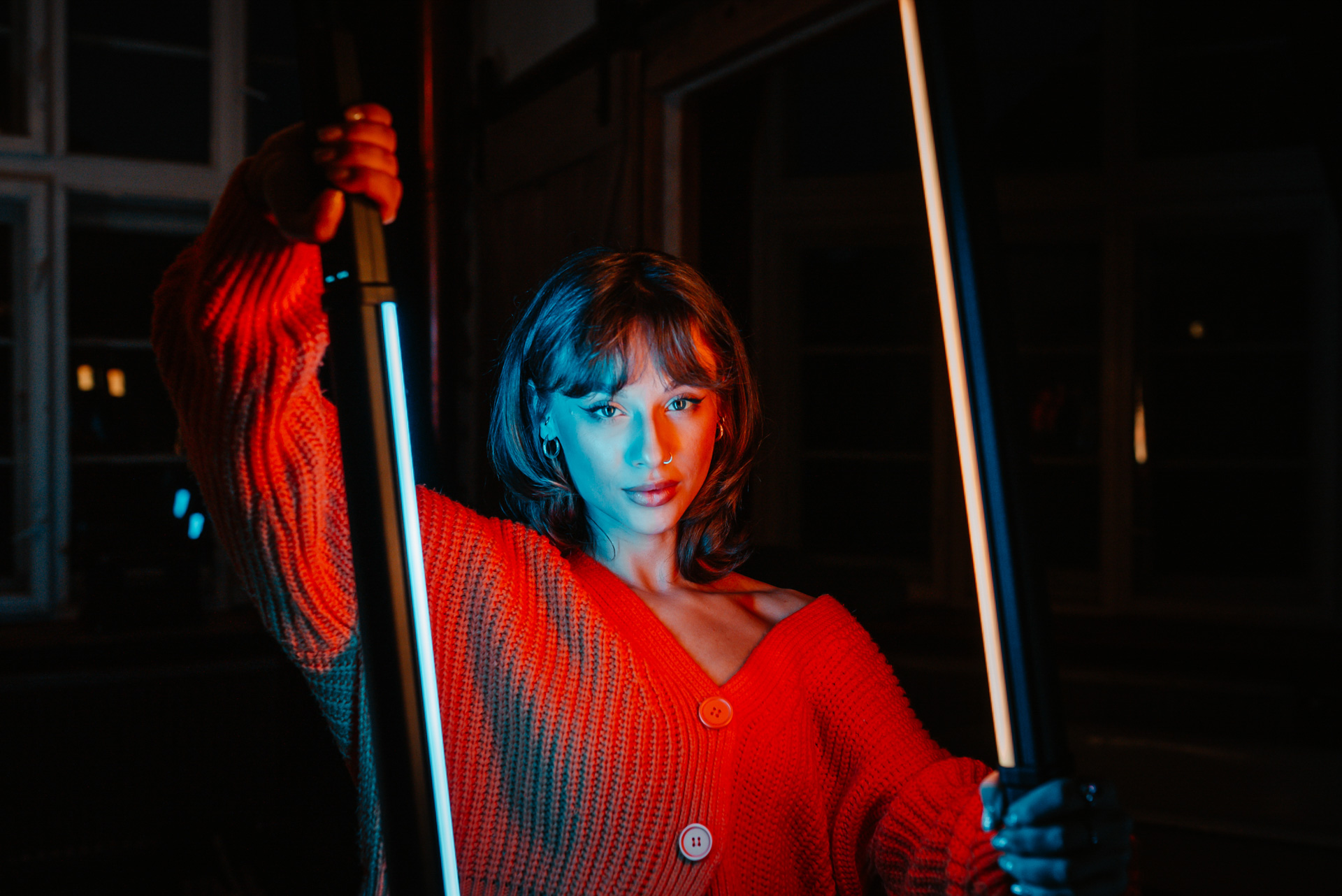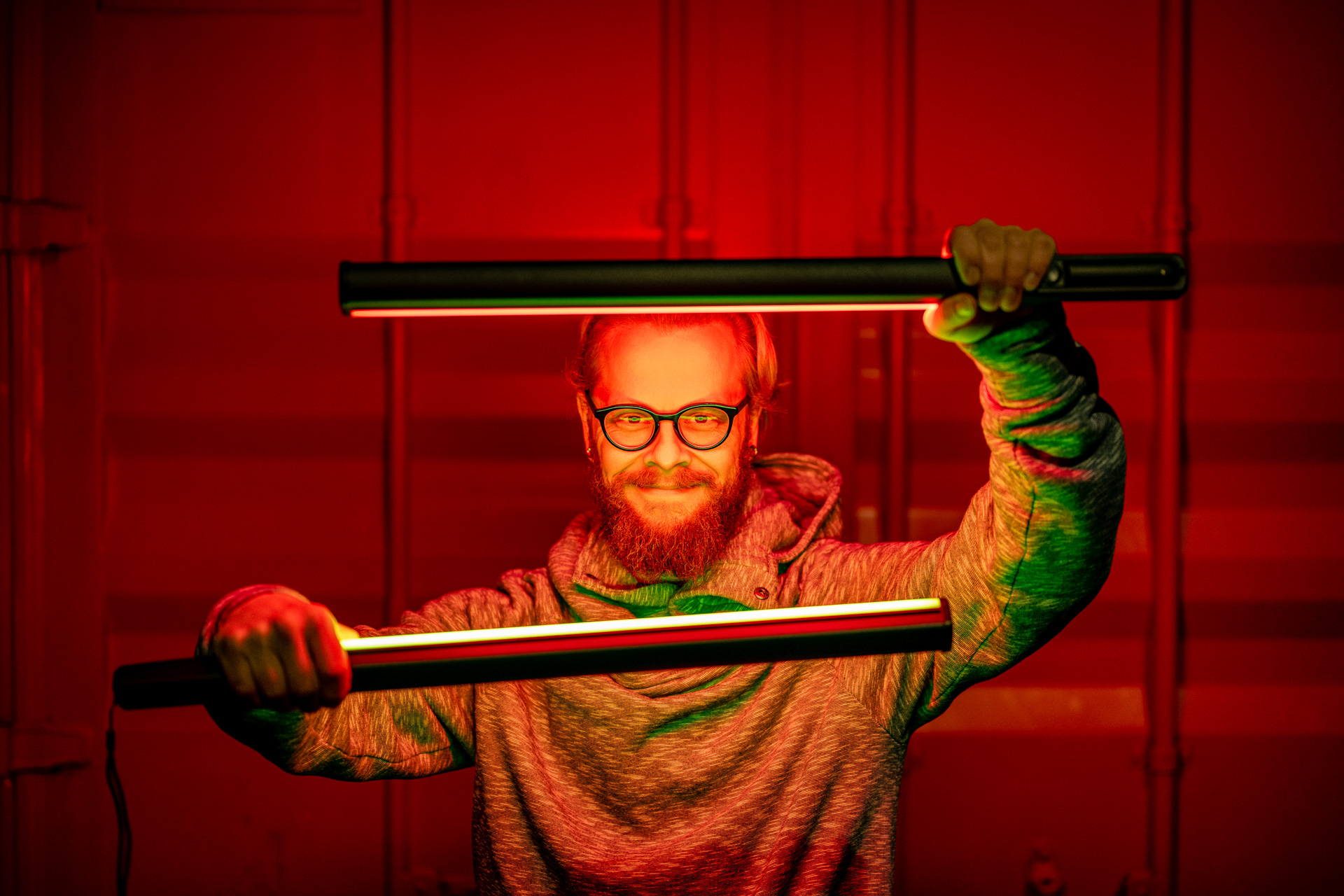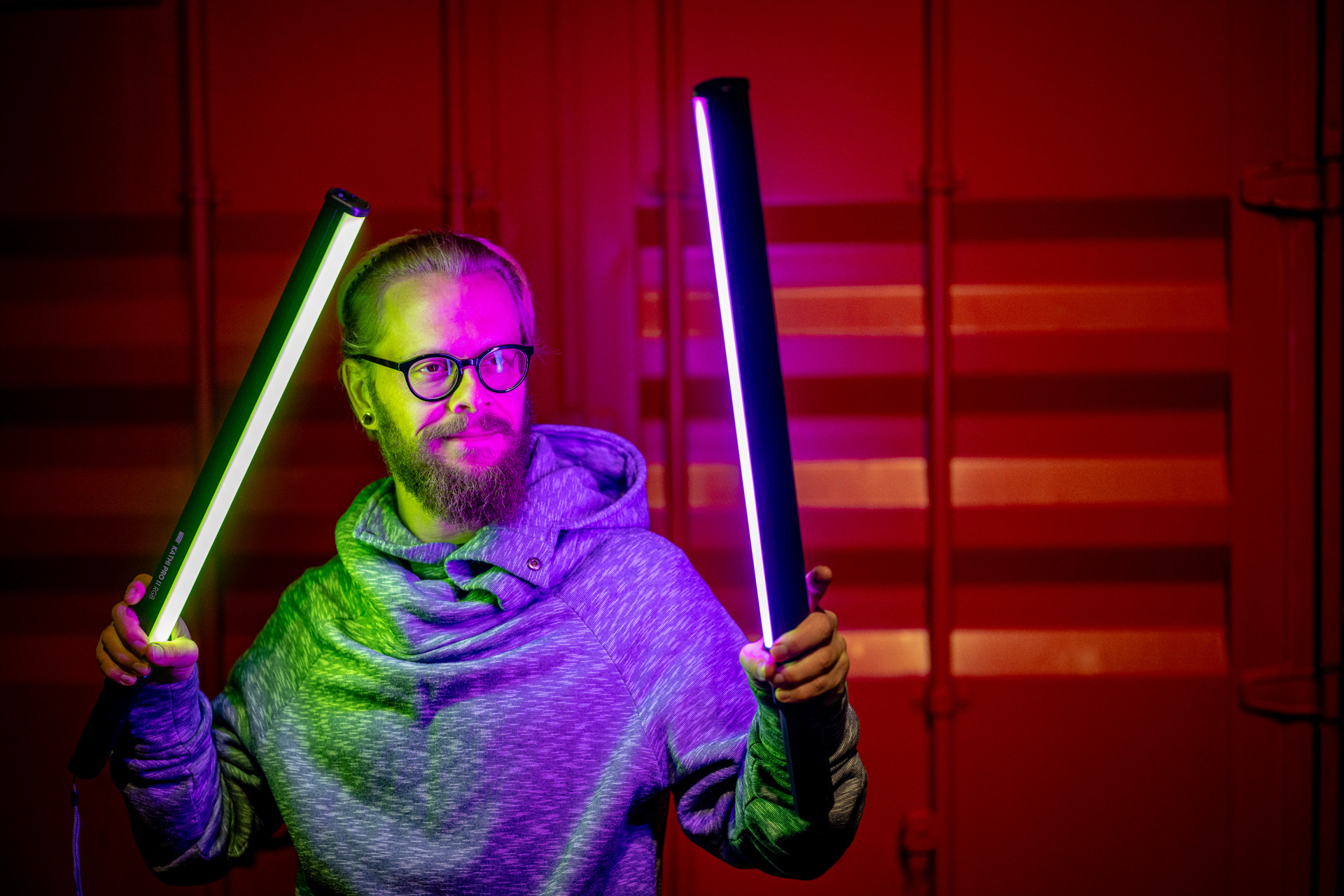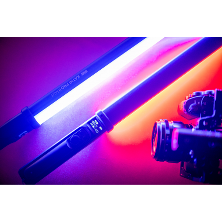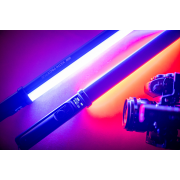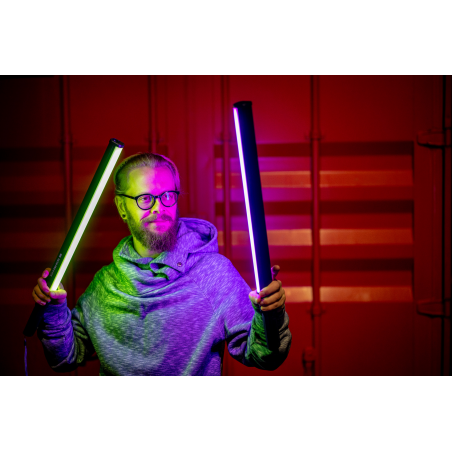 Newell RGB Kathi Pro II to druga wersja cieszącej się dużym zainteresowaniem lampy LED stworzonej z myślą o kreatywnych fotografach i filmowcach. Charakterystyczny kształt miecza świetlnego i 64 cm długości zapewnią Ci ogromną swobodę twórczą, zarówno podczas pracy "z ręki", jak również po zainstalowaniu urządzenia na statywie z gwintem 1/4". Lampa oferuje regulację temperatury barwowej (2700 - 6500 K), możliwość zmiany koloru światła w obrębie obszernej przestrzeni barw HSI, a także 12 gotowych efektów specjalnych (m.in. wóz strażacki, burza z piorunami lub ognisko). Port USB-C umożliwia szybkie ładowanie wbudowanego akumulatora lub zasilanie za pomocą power banku. To idealny wybór dla osób, które chcą bawić się kolorami, robić klimatyczne zdjęcia i filmy, eksperymentować z efektami specjalnymi lub tworzyć spektakularny "light painting".