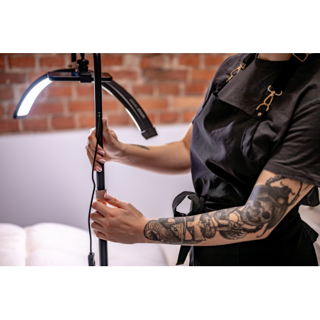 W zestawie z lampą LED Newell Dianis znajdziesz też praktyczny uchwyt na smartfon, który możesz zamontować w wybranym miejscu na statywie, tak aby urządzenie było dokładnie tam, gdzie go potrzebujesz. To rozwiązanie sprawdza się w wielu scenariuszach pracy – od nagrywania tutoriali makijażowych i relacji z zabiegów, przez tworzenie materiałów do mediów społecznościowych, aż po korzystanie z referencji podczas wykonywania tatuażu czy zdobień paznokci. Dzięki temu nie musisz odkładać telefonu na bok ani odrywać się od pracy – podgląd, inspiracje lub notatki będą zawsze na wyciągnięcie ręki, a stanowisko pozostanie uporządkowane.