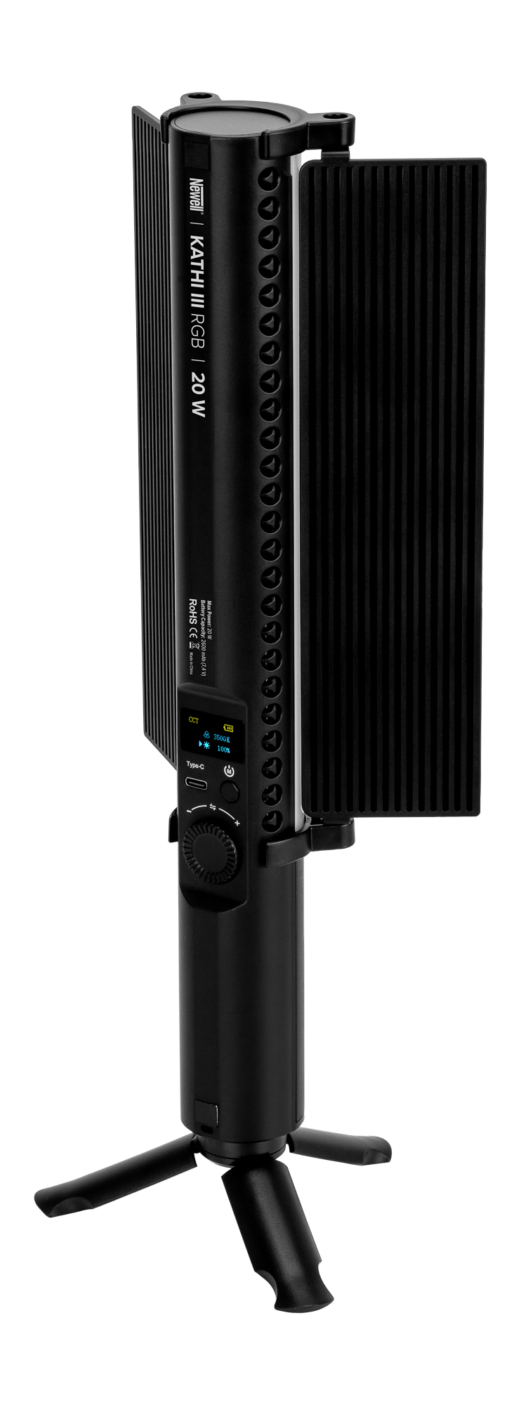 Zintegrowany akumulator o pojemności 2600 mAh zapewni 60 minut pracy przy maksymalnej jasności lub do 480 minut przy minimalnym poziomie mocy. To ogromna swoboda podczas nagrywania lub fotografowania w plenerze, na planie i w podróży. Port USB-C sprawia, że lampę bez problemu naładujesz z power banku, laptopa lub standardowej ładowarki. Newell RGB Kathi III to sprzęt, który nie wymaga stałego dostępu do gniazdka, dając Ci jeszcze więcej przestrzeni na kreatywność.
