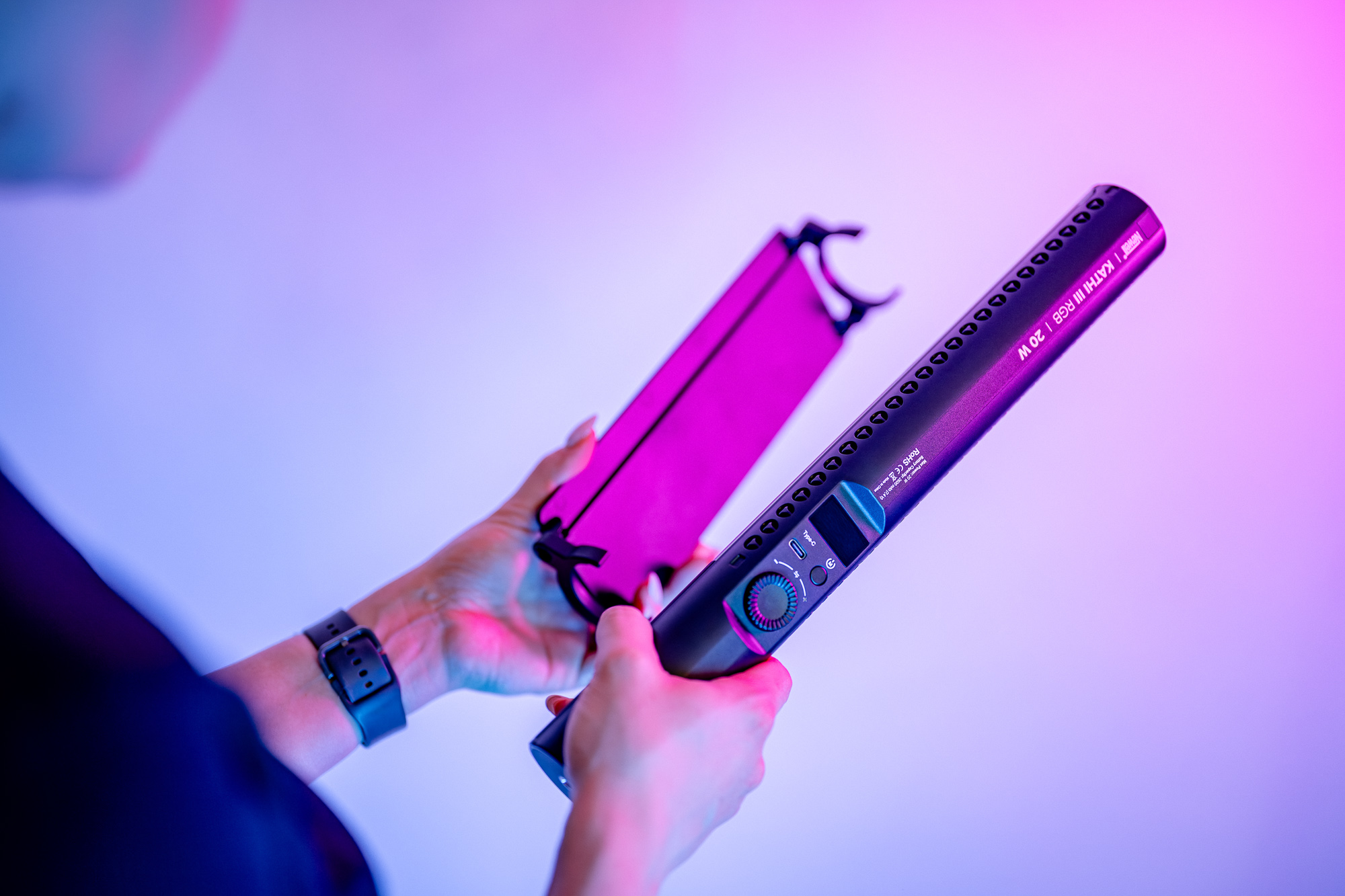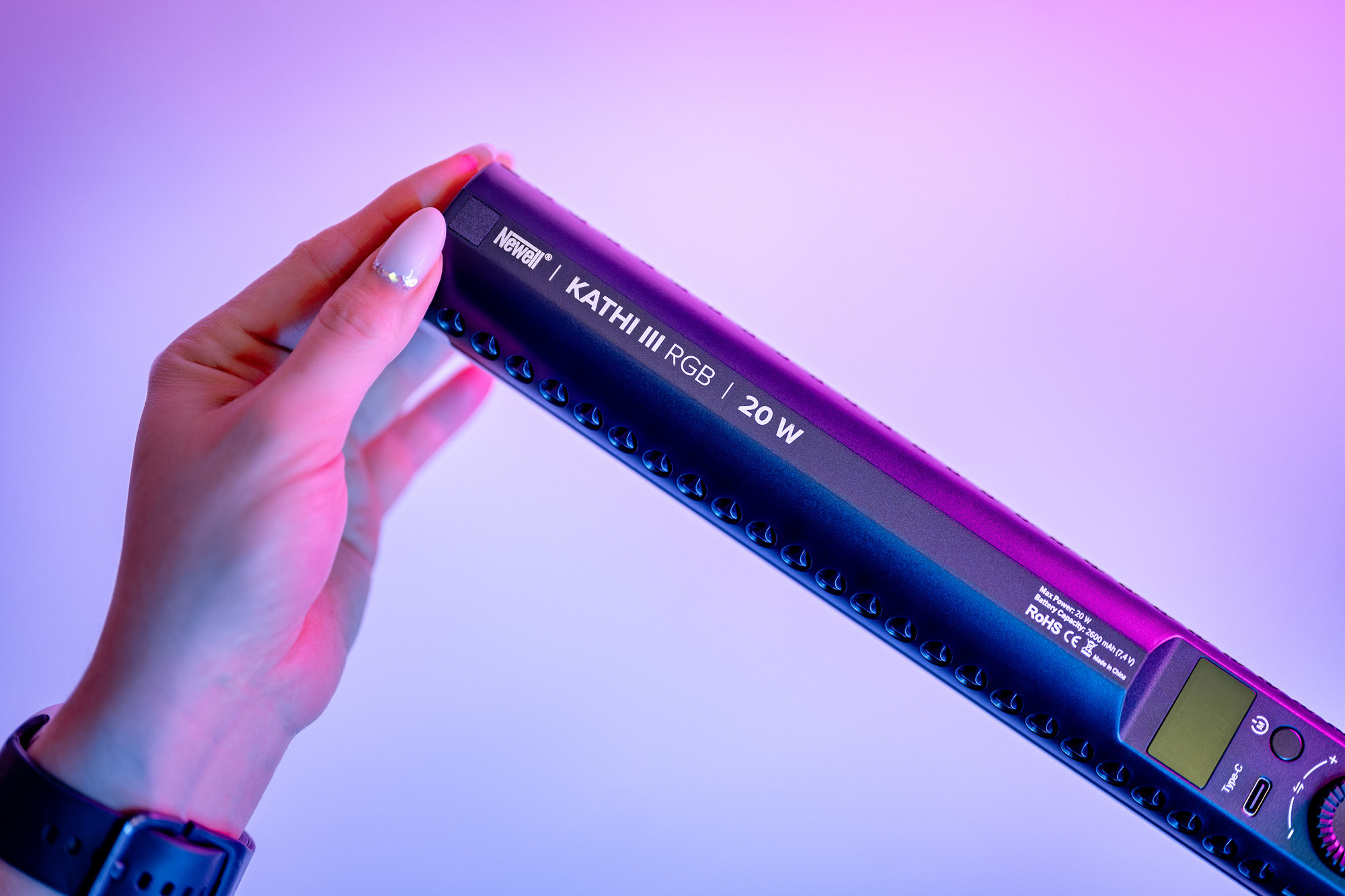 Podłużny kształt lampy LED Newell RGB Kathi III i antypoślizgowy uchwyt sprawiają, że świetnie pracuje się z nią „z ręki” – bez statywu i bez tracenia czasu na montaż. To szczególnie przydatne, gdy chcesz szybko doświetlić twarz w ruchu lub złapać światło pod konkretnym kątem. Newell RGB Kathi III świetnie sprawdzi się przy „light paintingu”, kreatywnych ujęciach nocnych, nagraniach zakulisowych, a także przy dynamicznych rolkach i scenach, w których światło ma podążać za bohaterem.