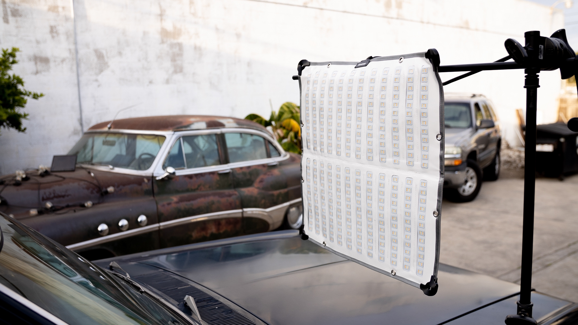 Są plany filmowe, na których ograniczona przestrzeń znacząco utrudnia pracę ze światłem. Wtedy do akcji wkracza lampa LED Amaran F22c! Elastyczną matę świetlną o wymiarach 60 na 60 cm zainstalujesz wszędzie tam, gdzie nie ma miejsca na duże statywy. Przyklej ją taśmą do sufitu, wykorzystaj opaski zaciskowe, zaczep klamerkami w dogodnym miejscu lub połącz z uchwytami "magic arm". 5 mm grubości i 880 g wagi to parametry, które zapewnią Ci ultramobilność, jakiej nie oferują tradycyjne panele LED zamknięte w ciężkich obudowach.