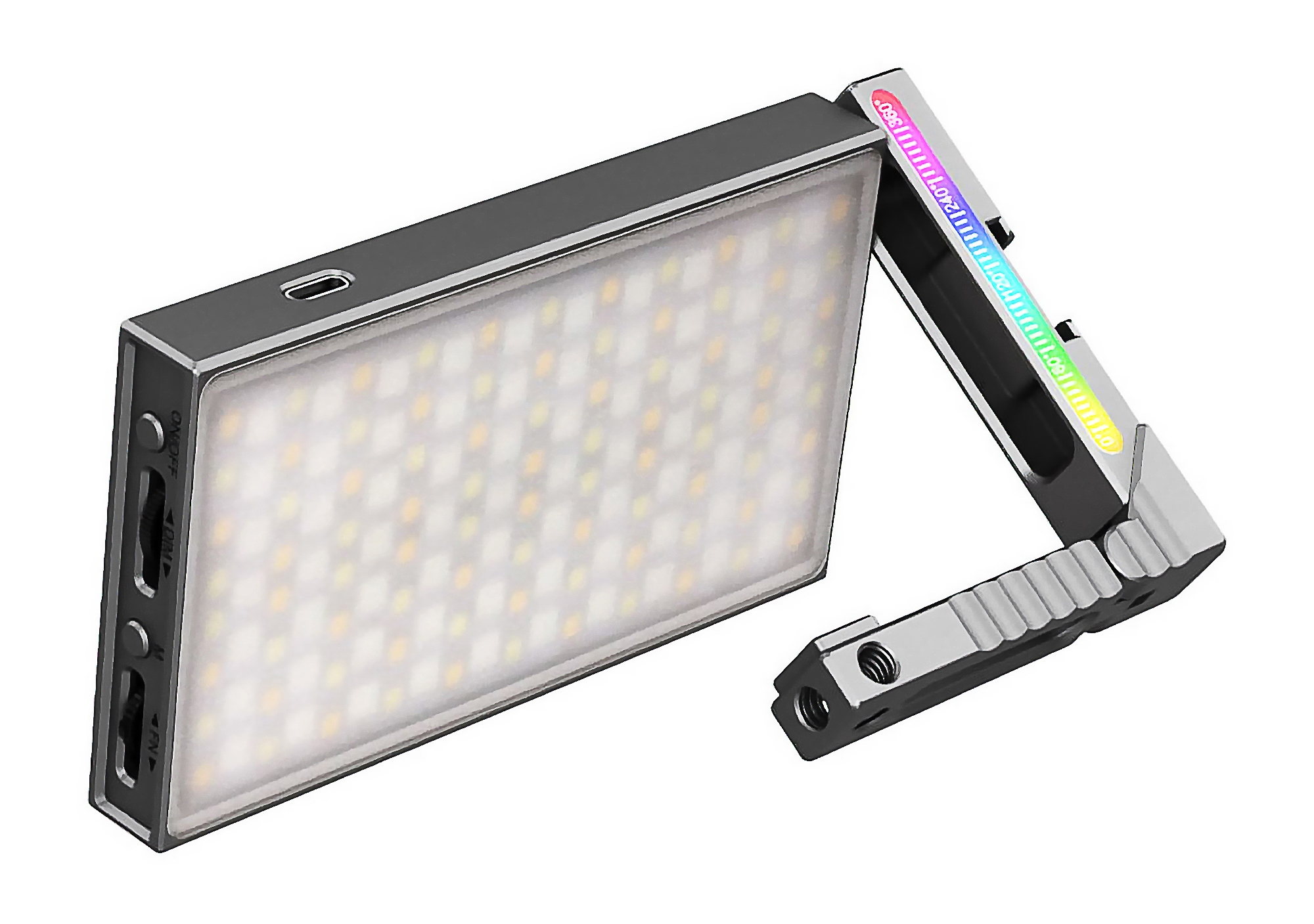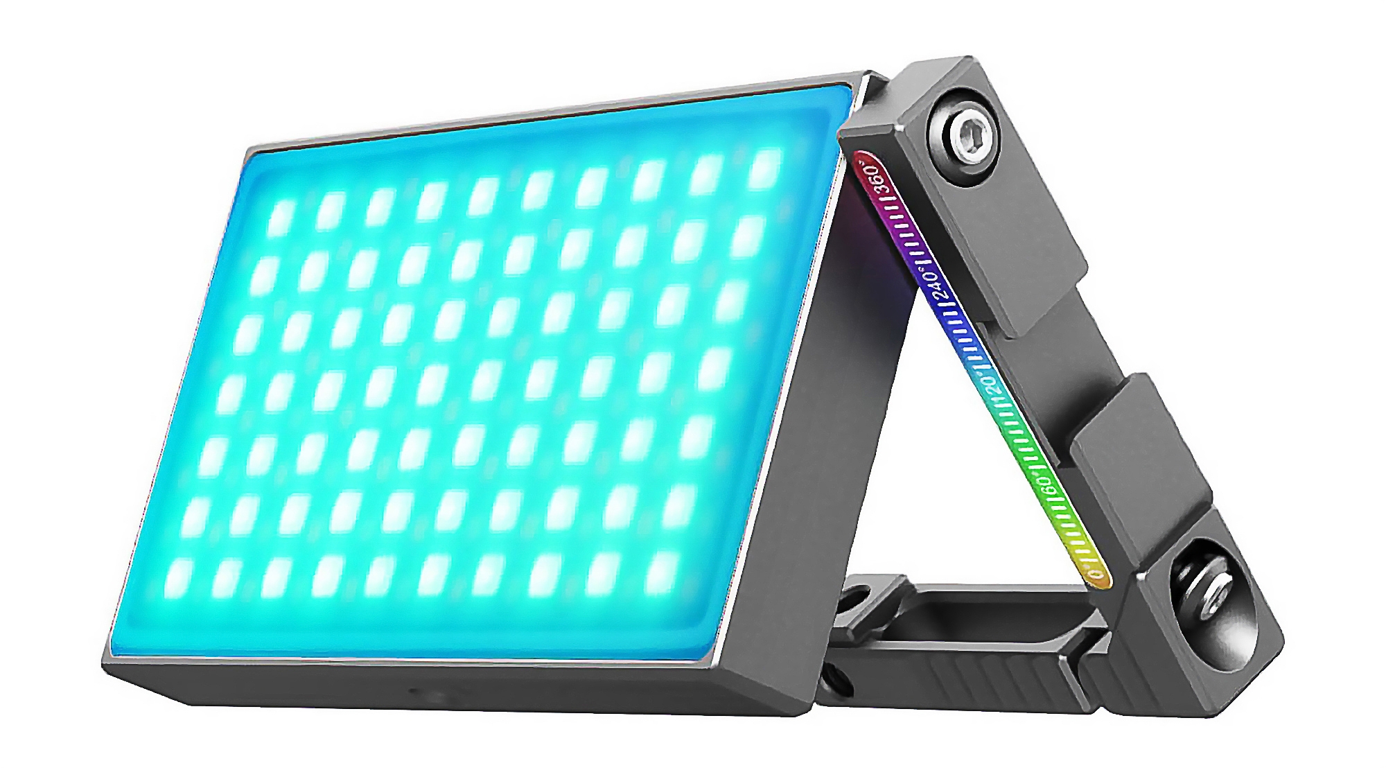 Znakiem rozpoznawczym lampy LED Ulanzi R70 - RGB, WB (2700 K - 8500 K) jest rozkładany uchwyt zintegrowany z obudową. Wyposażono go w wiele gwintów 1/4" oraz gniazdo zimnej stopki pozwalające połączyć z urządzeniem dodatkowe akcesoria. Przegubowe ramię w kształcie litery "L" umożliwia pochylenie lampy oraz obrót w zakresie 360º. Dzięki temu precyzyjnie ukierunkujesz światło, zgodnie z bieżącymi potrzebami Twoich kadrów. Uchwyt może również pełnić funkcję podstawki.