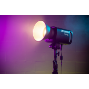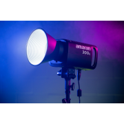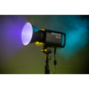 Aby sprostać wymaganiom każdego planu zdjęciowego, lampa Amaran 300c została wyposażona w mocowanie Bowens. Dzięki temu rozwiązaniu możesz połączyć ją z dziesiątkami różnych modyfikatorów światła dostępnych na rynku. Natężenie światła może zostać zwiększone za pomocą takich narzędzi jak soczewka Fresnel 2X lub strumienica Aputure Spotlight. To jednak nie koniec możliwości. Sięgając po jeden z unikalnych softboxów (m.in. Aputure Light Dome SE lub Aputure Light Octadome 120) skutecznie zmiękczysz lub rozproszysz światło. Jeden z modyfikatorów został dołączony do zestawu. To czasza Hyper Reflector z mocowaniem Bowens. Łącząc ją z lampą, osiągniesz natężenie światła sięgające 26580 luksów, przy temperaturze barwowej 5600 K.