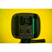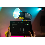 W tylnej części lampy umieszczono ekran LCD oraz 2 ergonomiczne pokrętła. Wystarczy jeden ruch ręki, aby płynnie dostosować temperaturę barwową lub ustawić wybrany kolor światła w obrębie palety HSI. Wszystkie niezbędne informacje znajdziesz na podświetlanym ekranie. Możesz wygodnie zmieniać barwę (hue), nasycenie (saturation) oraz jasność (intensity) światła. Producent nie zapomniał też o korekcji G/M (Green / Magenta).