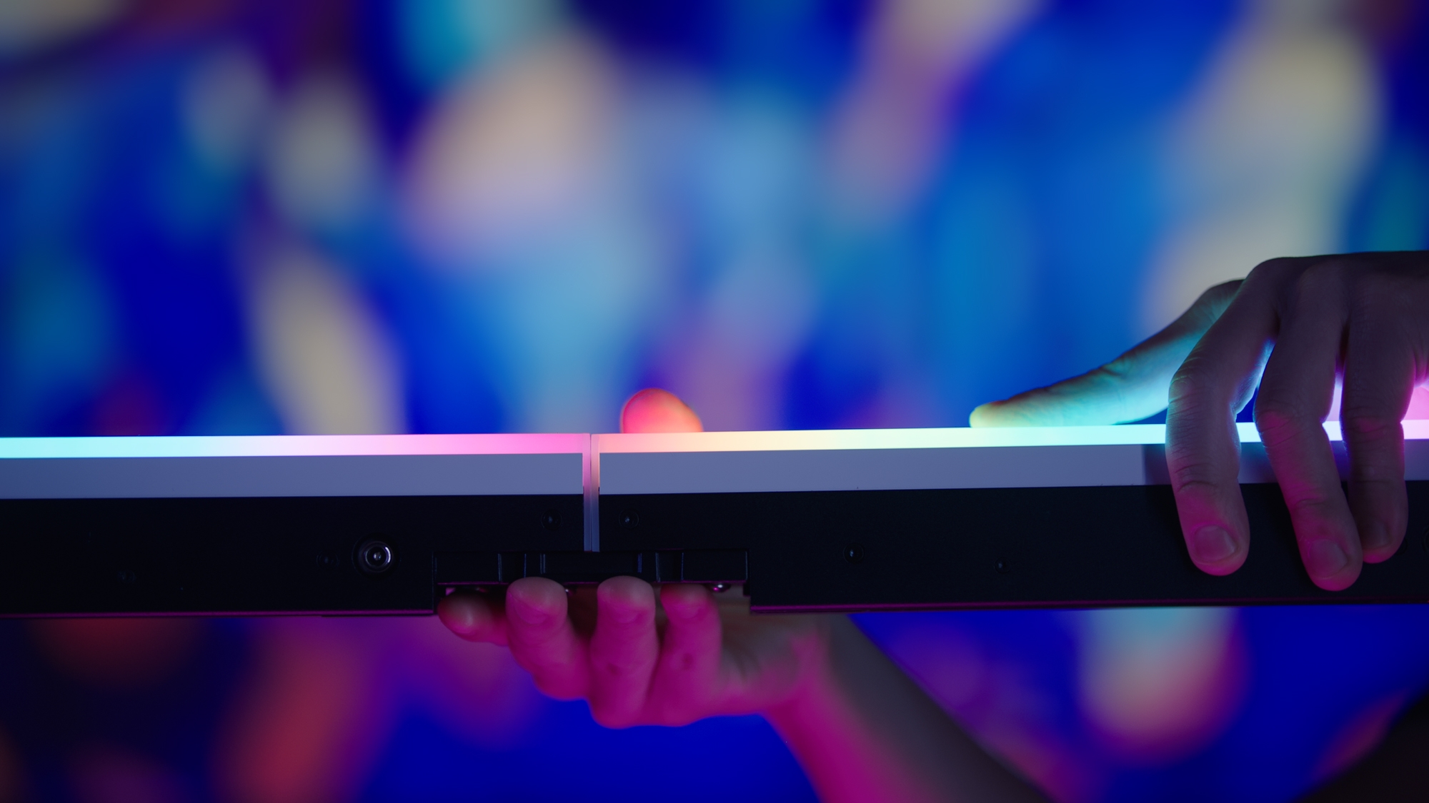 System Aputure Infinibar otworzy przed Tobą unikalne możliwości kreowania atmosfery za pomocą kolorowego światła. Podłużne panele możesz łączyć ze sobą na płaskich powierzchniach lub tworzyć trójwymiarowe konstrukcje. Długie linie, trójkąty, sześciokąty, gwiazdy – lampy Infinibar są jak klocki, które możesz ułożyć na setki różnych sposobów. W zestawie z każdą lampą Infinibar znajdziesz jeden adapter montażowy pozwalający połączyć ze sobą dwa panele.