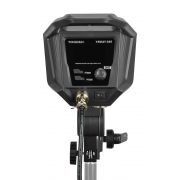 W tylnej części obudowy lampy LED Yongnuo YNRay360 - WB (3200 K - 5600 K) umieszczono szeroki uchwyt pozwalający w wygodny sposób regulować nachylenie urządzenia w zakresie 180º. Solidną blokadę optymalnej pozycji urządzenia zapewnia hamulec tarczowy z wygodnym w obsłudze zaciskiem. Na obudowie urządzenia nie zabrakło też ergonomicznego panelu kontrolnego z dużymi przyciskami, pokrętłem regulacyjnym oraz jasnym ekranem LCD, który zapewni wygodną obsługę w każdych warunkach oświetleniowych.