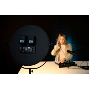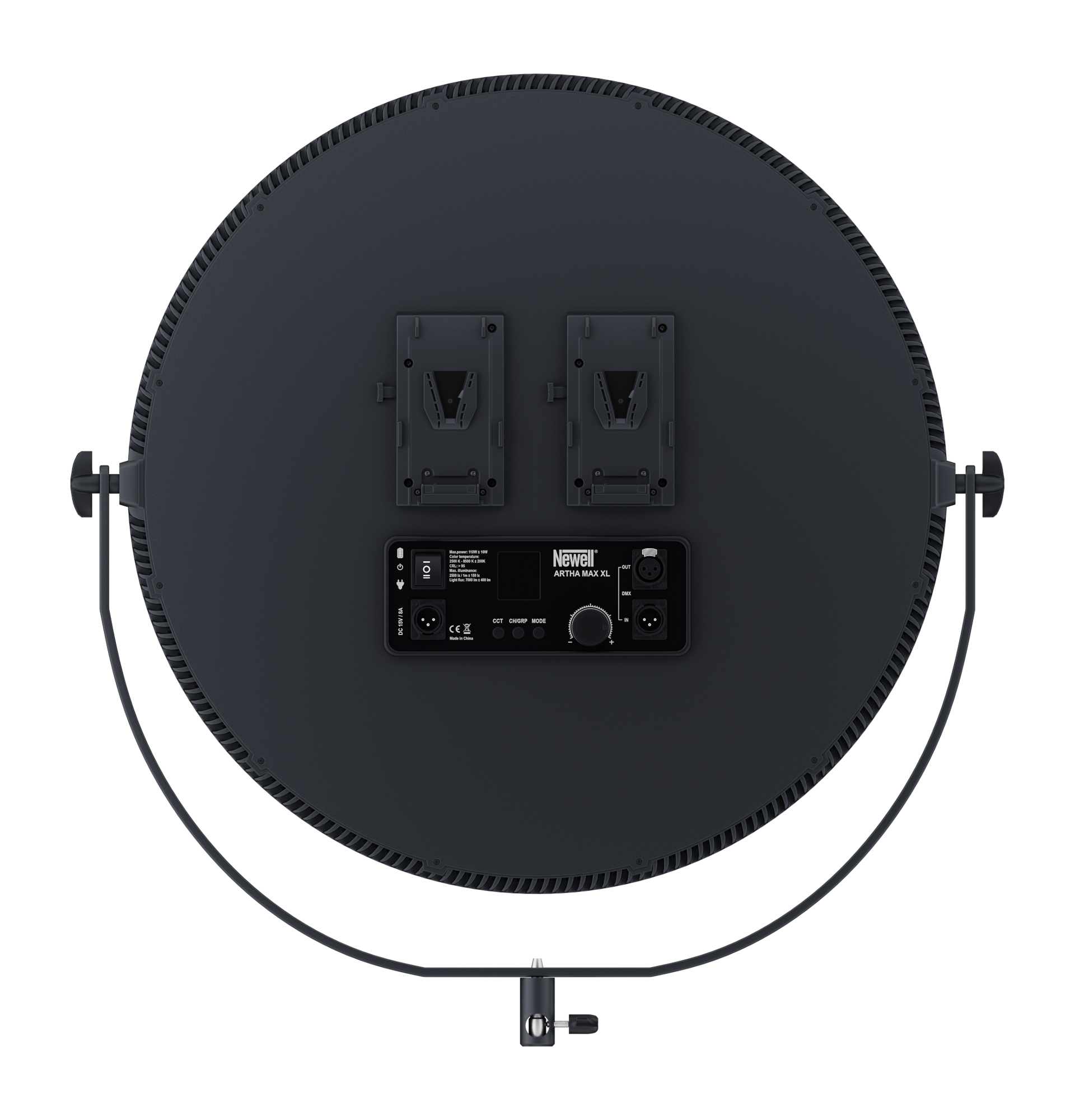 Newell Air Artha Max XL to mocne źródło światła w formie okrągłego panelu LED o imponującej średnicy 55,8 cm. Z maksymalną mocą 110 W oraz strumieniem świetlnym sięgającym 7000 lumenów, zapewnia ogromną wszechstronność zastosowań. Regulacja temperatury barwowej w zakresie od 2500 do 8500 K umożliwia dokładne dopasowanie do bieżących potrzeb. Lampa posiada też wbudowany dyfuzor zapewniający równomierne rozproszenia światła. Do zestawu dołączono zasilacz sieciowy. 2 gniazda V-Mount pozwolą również skorzystać z akumulatorów. Pilot oraz aplikacja mobilna umożliwiają zdalne sterowanie. Wsparcie dla systemów DMX zapewnia integrację z profesjonalnymi zestawami oświetleniowymi. Lampa może pracować w obrębie 40 kanałów i 3 grup. W zestawie solidna torba transportowa.