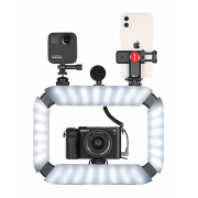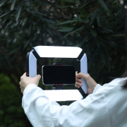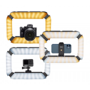 Ulanzi U200 to coś więcej niż zwykła lampa. Dzięki unikalnej konstrukcji, która umożliwia montaż smartfona lub aparatu w centralnej części panelu zyskujesz równomierne oświetlenie i jeszcze większy komfort pracy „z ręki”. Lampa może pełnić funkcję ergonomicznego uchwytu. To idealne rozwiązanie do fotografii produktowej, portretów, vlogów, transmisji na żywo, a także do… oświetlania fotobudki, w tym tej obrotowej, umożliwiającej nagrywanie w 360º. Lampa oferuje regulację temperatury barwowej w zakresie od 2500 do 8500 K, gwarantując jednocześnie miękkie i naturalne światło. Urządzenie oferuje aż 5 punktów montażu. Akumulator o pojemności 8000 mAh zapewni nawet do 10,5 h pracy. Dodatkowy port USB pozwoli wykorzystać lampę w charakterze power banku.