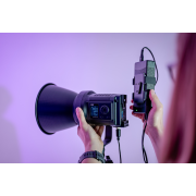 Wygodną kontrolę parametrów światła zapewnia ergonomiczne pokrętło, przyciski oraz czytelny ekran LCD. Jeden rzut oka wystarczy, aby sprawdzić, na jakim kanale i w jakiej grupie pracuje lampa, jaka jest jej aktualna temperatura barwowa światła i czy urządzenie łączy się z aplikacją Bluetooth lub pilotem. Pokrętło zapewnia jeszcze szybszą kontrolę parametrów. Wszystko to sprawia, że zaplanowane ujęcia i kadry przygotujesz w ciągu kilku sekund!