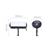 Lampa LED Ulanzi AL60 - WB (2700 K - 6500 K) wypełnia się powietrzem do wymiarów około 50 x 27 x 20 cm, zapewniając duży obszar świecenia i miękkie, przyjemne światło. Po złożeniu zajmuje niewiele miejsca, dzięki czemu zyskujesz dodatkową przestrzeń na więcej obiektywów lub inne typy lamp. Urządzenie waży jedynie 805 gramów, a z powodzeniem może konkurować ze standardowym sprzętem w plastikowych lub metalowych obudowach. Po złożeniu wymiary lampy to ok. 30 x 17 cm, co sprawia, że bez trudu zmieścisz ją w plecaku czy torbie fotograficznej. To prosty przepis na mobilne studio oświetleniowe – gdziekolwiek jesteś.