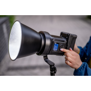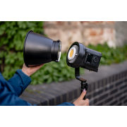 - Zora — kompaktowe, ale niezwykle mocne lampy LED, dostępne w wariantach RGB oraz WB. Zora 90 to mobilne źródło światła o mocy 100 W, z wbudowanym akumulatorem i mocowaniem mini Bowens. Idealne dla vlogerów, fotografów w terenie i twórców pracujących w ruchu. Po dokupieniu adaptera można korzystać również z akcesoriów w standardzie Bowens.