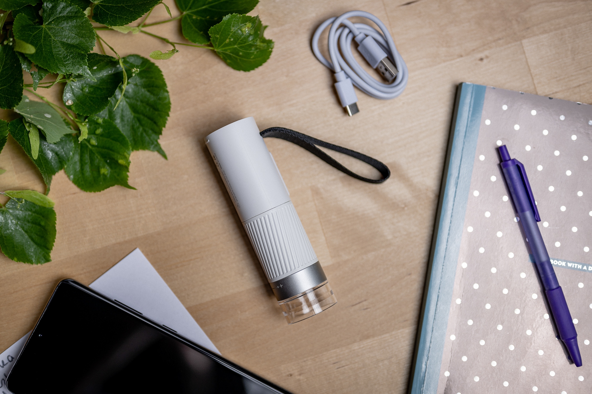 Zarówno bazę, jak i sam mikroskop wyposażono w akumulatory, które pozwalają działać urządzeniom bezprzewodowo. Dzięki temu zyskujesz jeszcze większą mobilność. Ponadto uniwersalny port USB-C umożliwia wygodne ładowanie lub zasilanie urządzeń, bez konieczności sięgania po specjalistyczne ładowarki. Wystarczy ta, którą na co dzień uzupełniasz energię w swoim smartfonie.