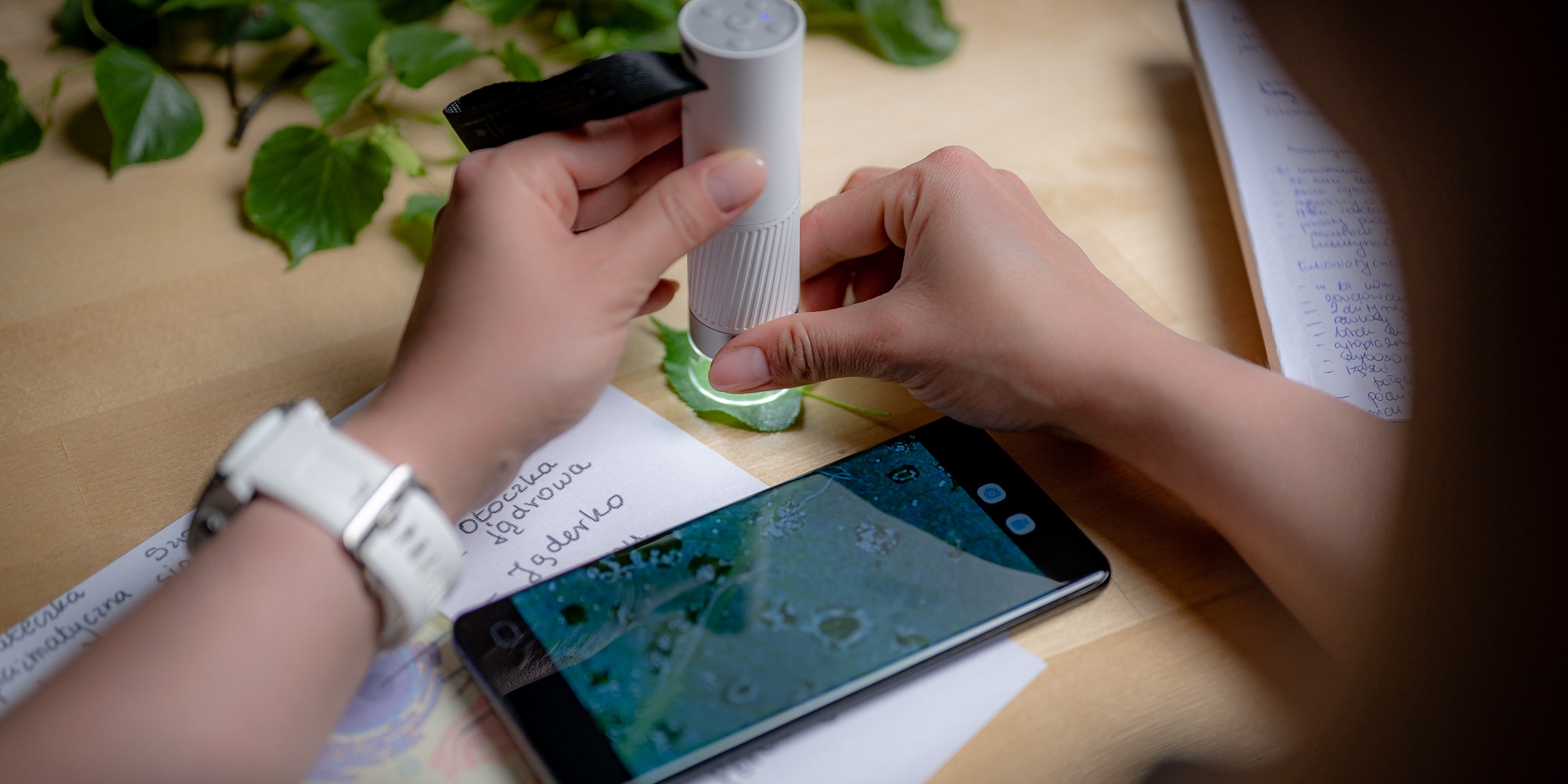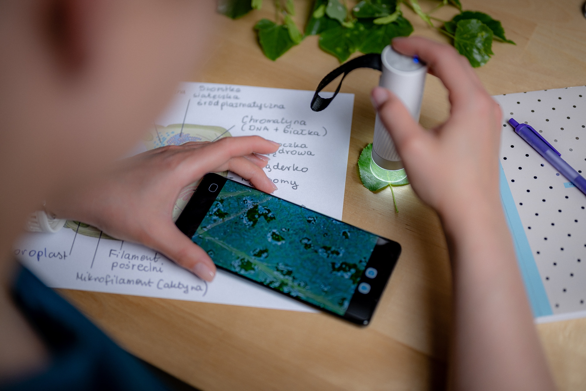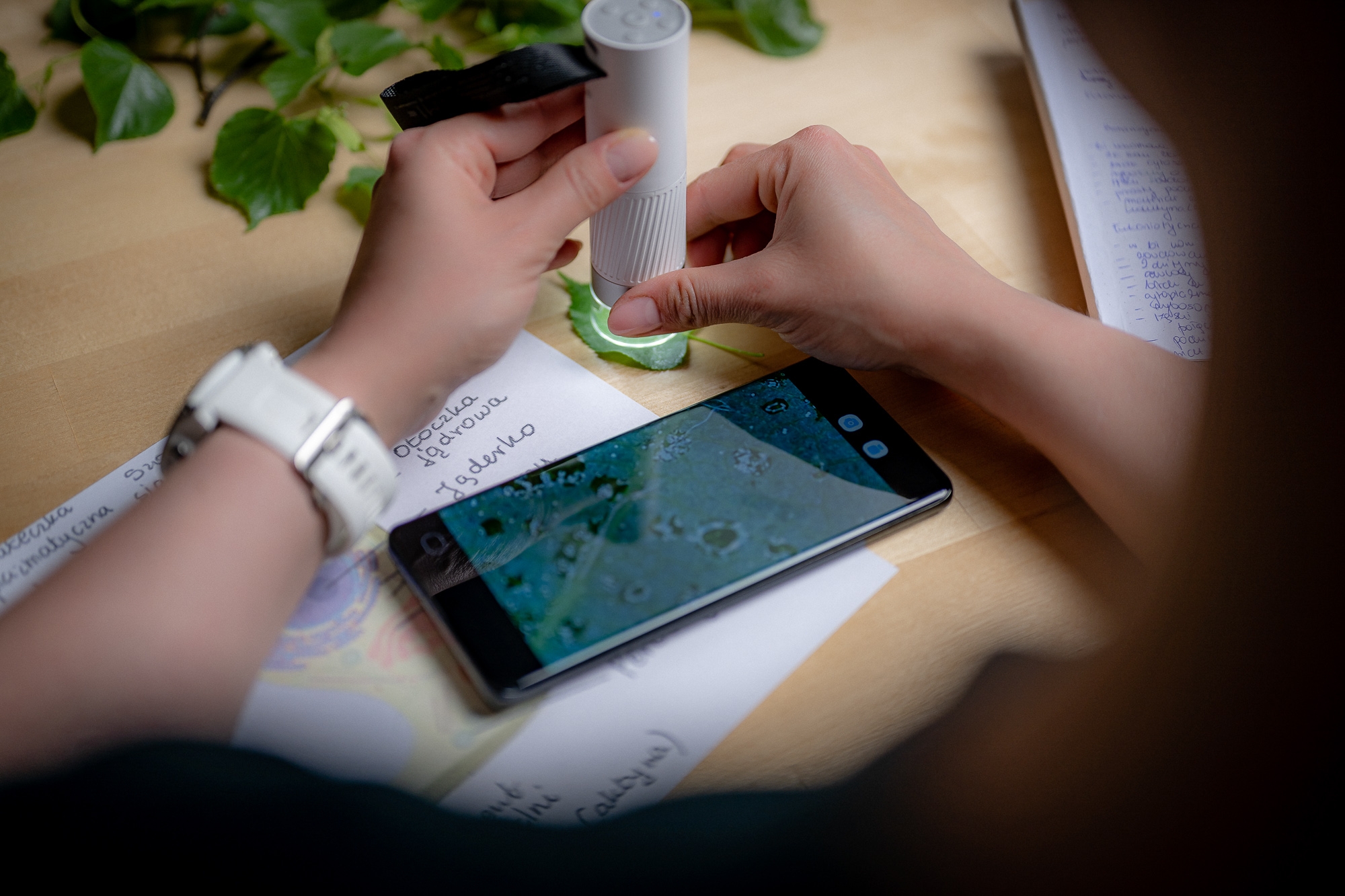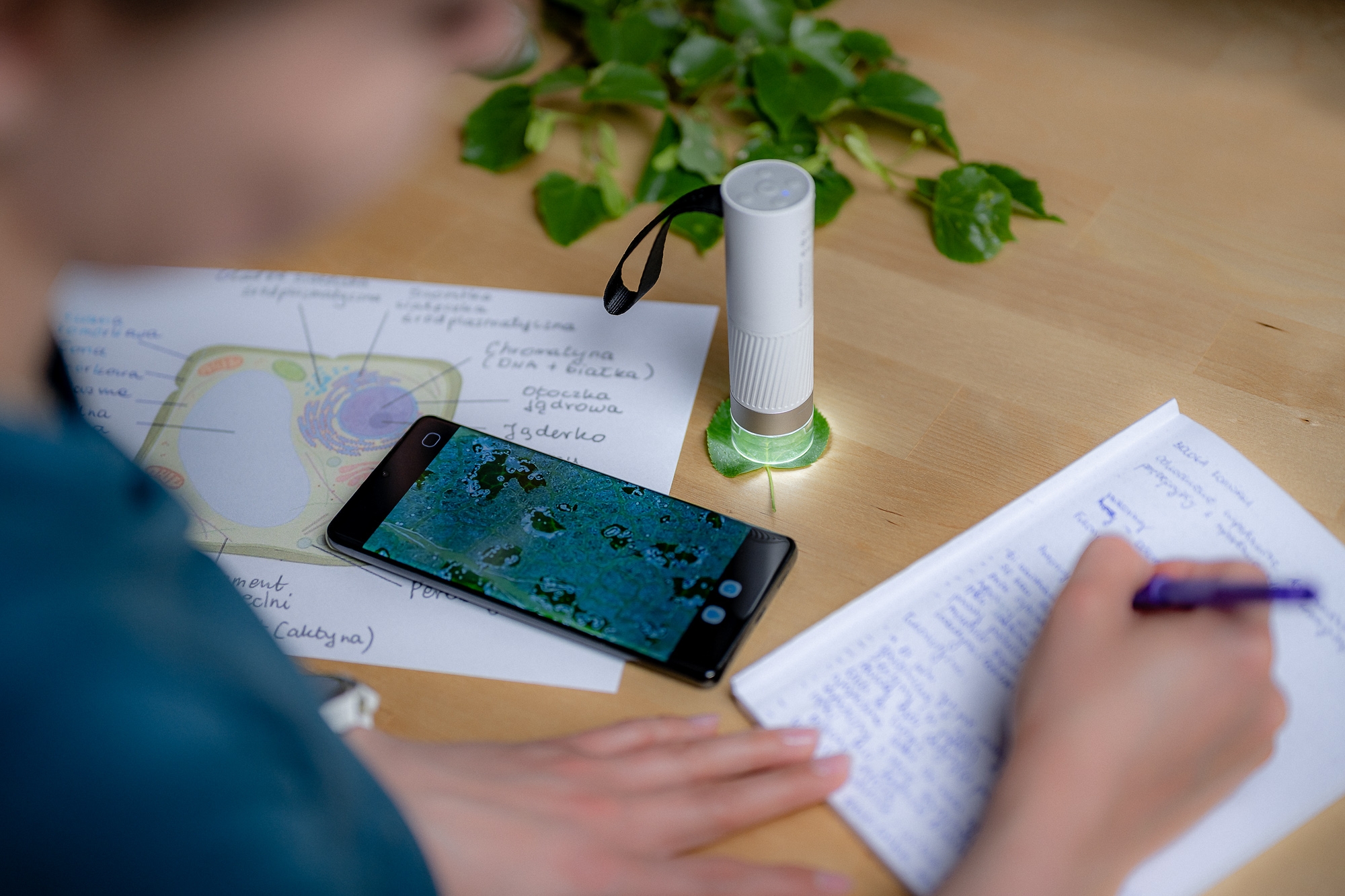 Łączność Wi-Fi umożliwia błyskawiczne nawiązanie połączenia ze smartfonem lub tabletem. Dzięki bezpłatnej aplikacji Beaver Point dostępnej na systemy iOS oraz Android, możesz w czasie rzeczywistym oglądać i analizować obraz zarejestrowany przez mikroskop. Wszystko, co zobaczysz, może zostać uwiecznione na zdjęciu lub filmie.