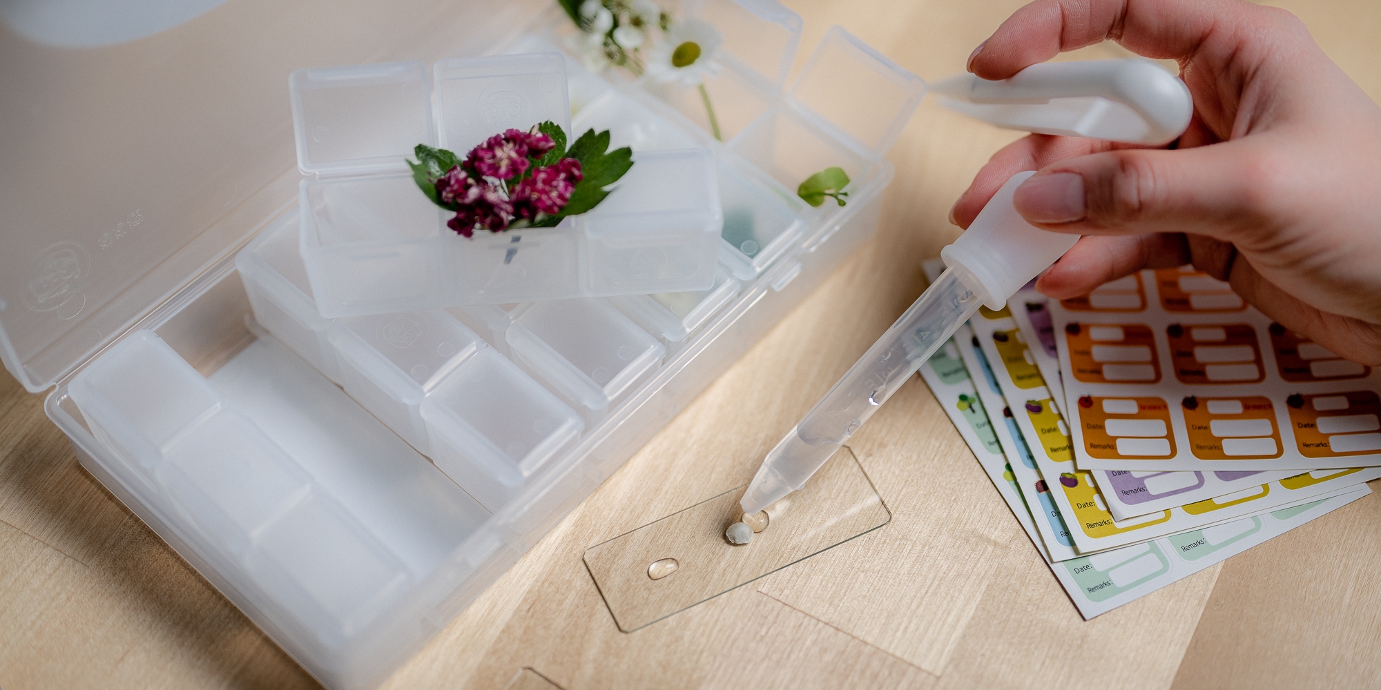 W zestawie znajdziesz też 10 gotowych preparatów zamkniętych w solidnych plastikowych pudełkach z przegródkami. Wśród nich znajdziesz: fragment mrówki, przekrój liścia sosny, przekrój zalążni lilii, przekrój łodygi dyni, przekrój podłużny nasionka kukurydzy, skórkę cebuli, pyłek sosny, odnóże pszczoły, skrzydło pszczoły oraz łuskę złotej rybki. Zestaw uzupełniono również o 10 pustych szkiełek nakrywkowych, w których umieścisz własne preparaty.