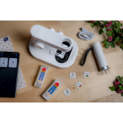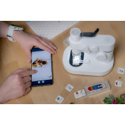 BeaverLAB DDL-M1B to połączenie ultrakompaktowego mikroskopu cyfrowego BeaverLAB DDL-DDL M1 ze specjalną bazą, która dodatkowo rozszerza funkcjonalność urządzenia. Mikroskop wykorzystuje Wi-Fi, aby połączyć się z aplikacją mobilną, którą bezpłatnie pobierzesz na swój smartfon lub tablet. Oferuje on powiększenie do 400X. Podświetlany stolik, możliwość regulacji natężenia oraz koloru światła, opcja bezprzewodowej pracy na akumulatorze to tylko niektóre cechy wyróżniające ten model. Trwałość urządzenia zapewnia solidna obudowa wykonana z aluminium lotniczego i tworzywa ABS. W zestawie znajdziesz też 5 gotowych preparatów i 5 pustych szkiełek nakrywkowych.