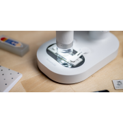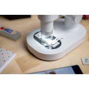 Mikroskop cyfrowy BeaverLAB DDL-M1B oferuje nie tylko podświetlenie z góry, ale także od dołu. Baza została wyposażona w specjalny stolik. Pozwoli on dodatkowo podświetlić preparaty. Za pomocą pokrętła możesz też wybrać jedną z 7 dostępnych barw światła. Zmiana koloru pozwala wyeliminować przebarwienia na preparatach i zyskać jeszcze lepszą jakość obrazu.