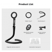 K&F Concept MS35 to elastyczny uchwyt do telefonu z magnetycznym mocowaniem MagSafe, zaprojektowany z myślą o mobilnych twórcach treści. Jego giętkie ramię z aluminiowym rdzeniem i silikonową powłoką pozwala dowolnie kształtować rączkę i ustawiać telefon pod niemal każdym kątem - w pionie, poziomie, a nawet z góry. Dzięki 16 neodymowym magnesom N52, mocowanie MagSafe działa błyskawicznie i stabilnie - bez potrzeby regulacji czy ustawiania zacisków. Uchwyt jest lekki, kompaktowy i gotowy do działania w każdej chwili - w zestawie znajdziesz też pilot Bluetooth, adapter do kamer sportowych oraz metalowy pierścień dla telefonów niewspierających technologii MagSafe.