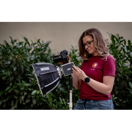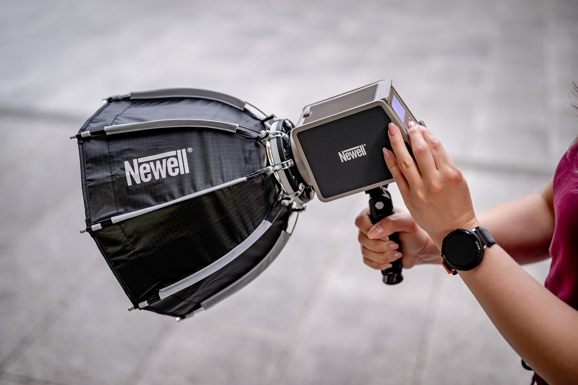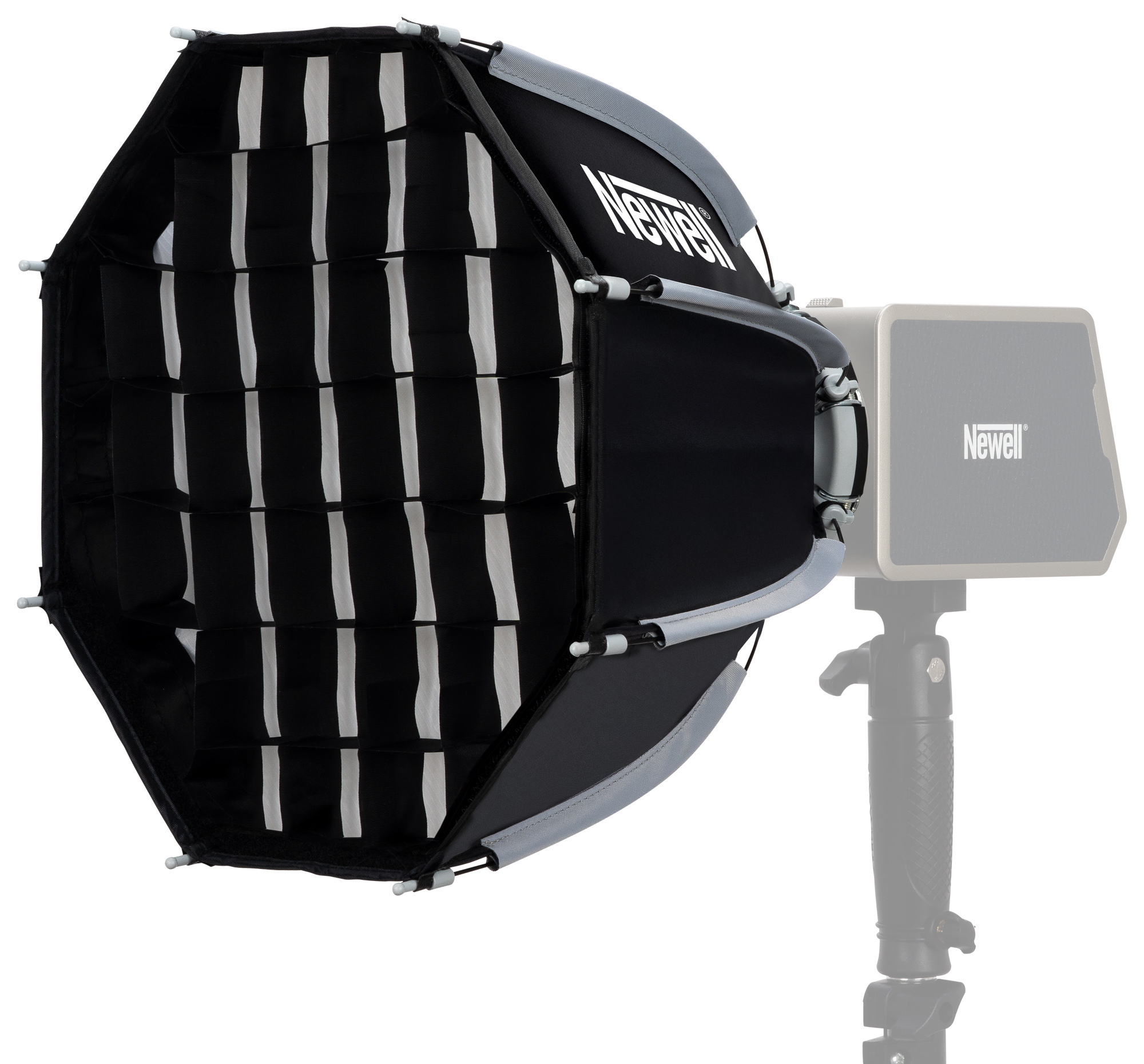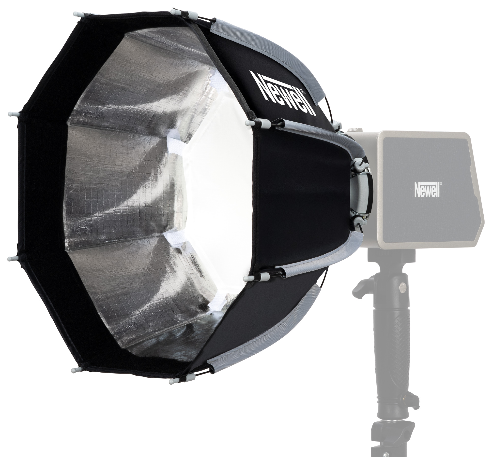 Prezentowany softbox oktagonalny Newell oferuje 30 cm średnicy po rozłożeniu. Taki modyfikator nie dominuje na planie zdjęciowym i nie zasłania kamery czy monitora. Na pewno docenisz go podczas pracy w ciasnych pomieszczeniach. To idealny kompromis pomiędzy mobilnością a funkcjonalnością – oferuje wystarczająco dużą powierzchnię, by zmiękczyć światło, ale jest na tyle mały, by zmieścić się nawet w bardzo małym studio.