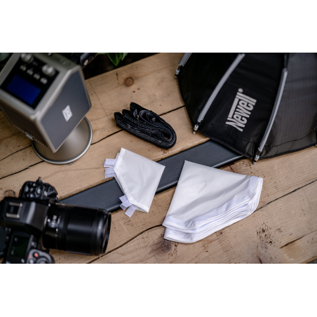 W zestawie z softboxem oktagonalnym Newell 30 cm znajdziesz również grid, który pozwala zawęzić kąt świecenia i zapobiega niekontrolowanemu rozlewaniu się światła na boki. To szczególnie przydatne podczas pracy w niewielkich pomieszczeniach, gdzie chcesz uniknąć odbić od ścian lub gdy zależy Ci na kinowym, skupionym świetle z charakterystycznymi cieniami.