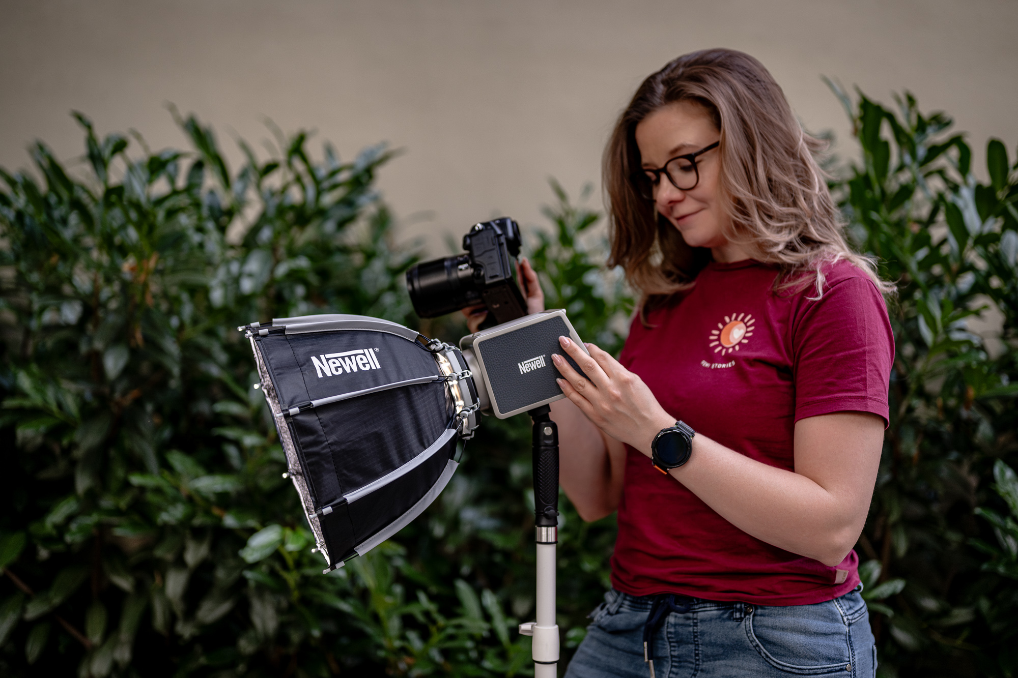 Softbox Newell o średnicy 30 cm to świetny wybór, gdy pracujesz w ograniczonej przestrzeni lub potrzebujesz punktowego, miękkiego światła do zdjęć z bliska. Doskonale sprawdzi się przy portretach, fotografii produktowej, detalu w rękodziele czy makijażu. Jest też niezastąpiony przy nagrywaniu rolek lub filmów typu beauty, gdzie zależy Ci na subtelnych przejściach tonalnych i precyzyjnym modelowaniu światła – bez konieczności używania dużego sprzętu.
