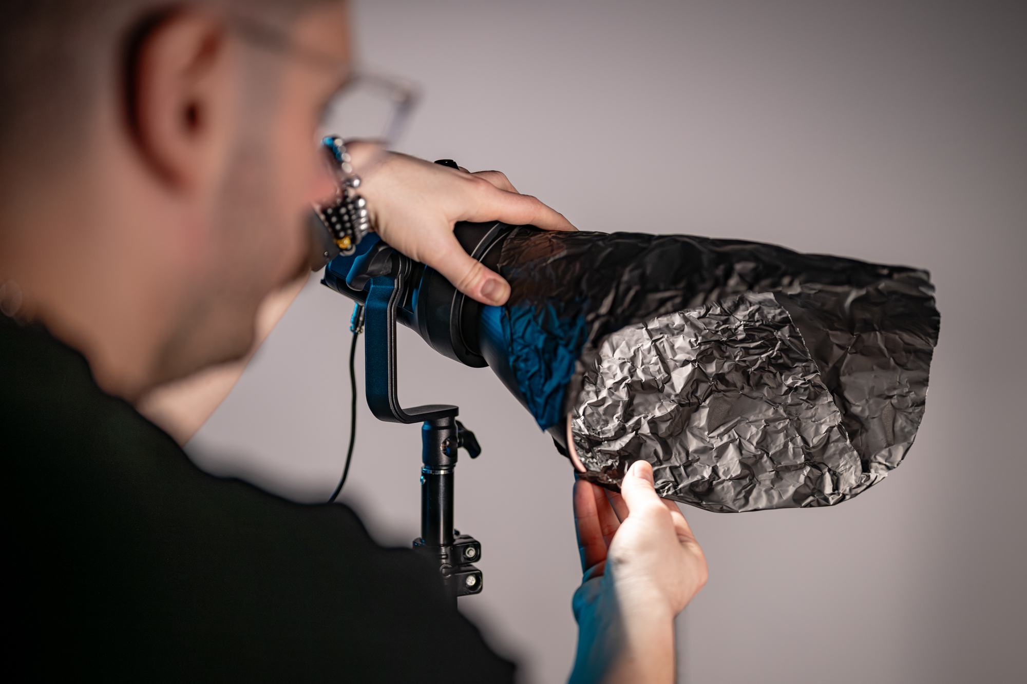 Grubość 55 mikronów (0,055 milimetra), to idealny balans pomiędzy plastycznością a wytrzymałością. Folia Newell Cinenoir łatwo się zgina, zwija i modeluje, dzięki czemu można szybko dopasować ją do lampy, statywu czy elementów scenografii. Po uformowaniu zachowuje nadany kształt, nie prostuje się samoczynnie i nie wymaga sięgania po dodatkowe uchwyty. To ogromne ułatwienie na planie zdjęciowym, gdzie liczy się czas, prostota i możliwość dokonywania szybkich korekt ustawienia światła.