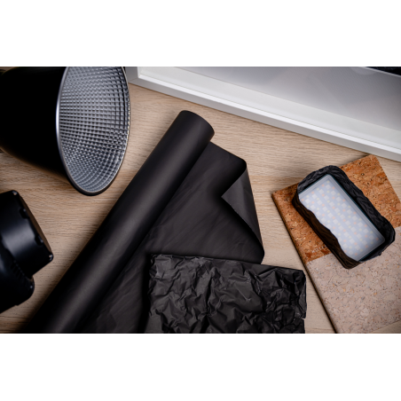 Czarna folia Newell Cinenoir to najlepszy sposób na to, aby okiełznać niesforne lampy na planie filmowym lub fotograficznym. Matowa, dwustronna powierzchnia skutecznie pochłania światło, zapobiegając niepożądanym odbiciom i blikom. Folia doskonale sprawdza się do odcinania fragmentów wiązki, maskowania wybranych części lamp, ograniczania rozlewania się promieni czy ochrony obiektywu przed bocznymi refleksami. Pozwala fizycznie zablokować światło, które obniża kontrast lub wpada w kadr z niewłaściwej strony.