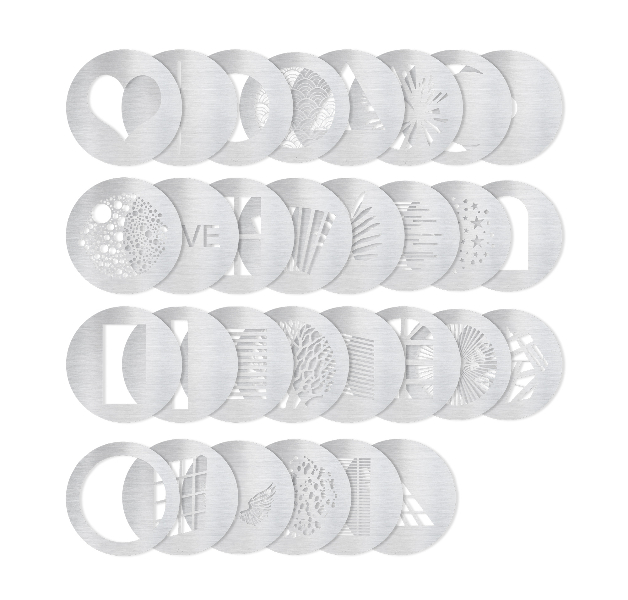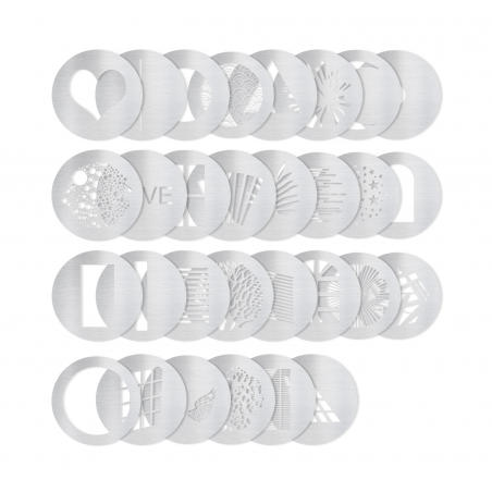 W zestawie ze strumienicą Newell Perseo-36 Pro znajdziesz aż 29 filtrów GOBO. Bogata kolekcja wzorów i kształtów pozwala budować zróżnicowane scenografie świetlne – od subtelnych motywów organicznych po bardziej geometryczne i dekoracyjne kompozycje. Filtry umieszczono w praktycznym etui przypominającym książeczkę. Każda metalowa płytka może zostać umieszczona w przezroczystej koszulce, dzięki czemu przeglądanie dostępnych wzorów jest jeszcze wygodniejsze.