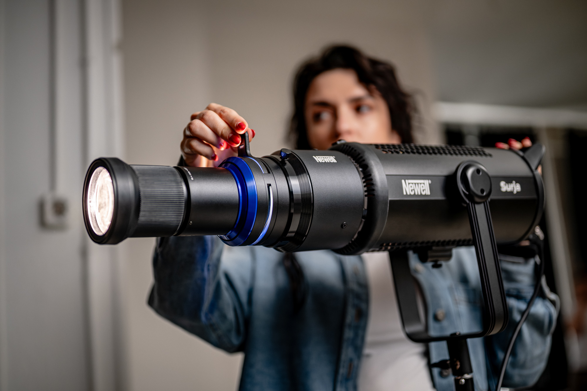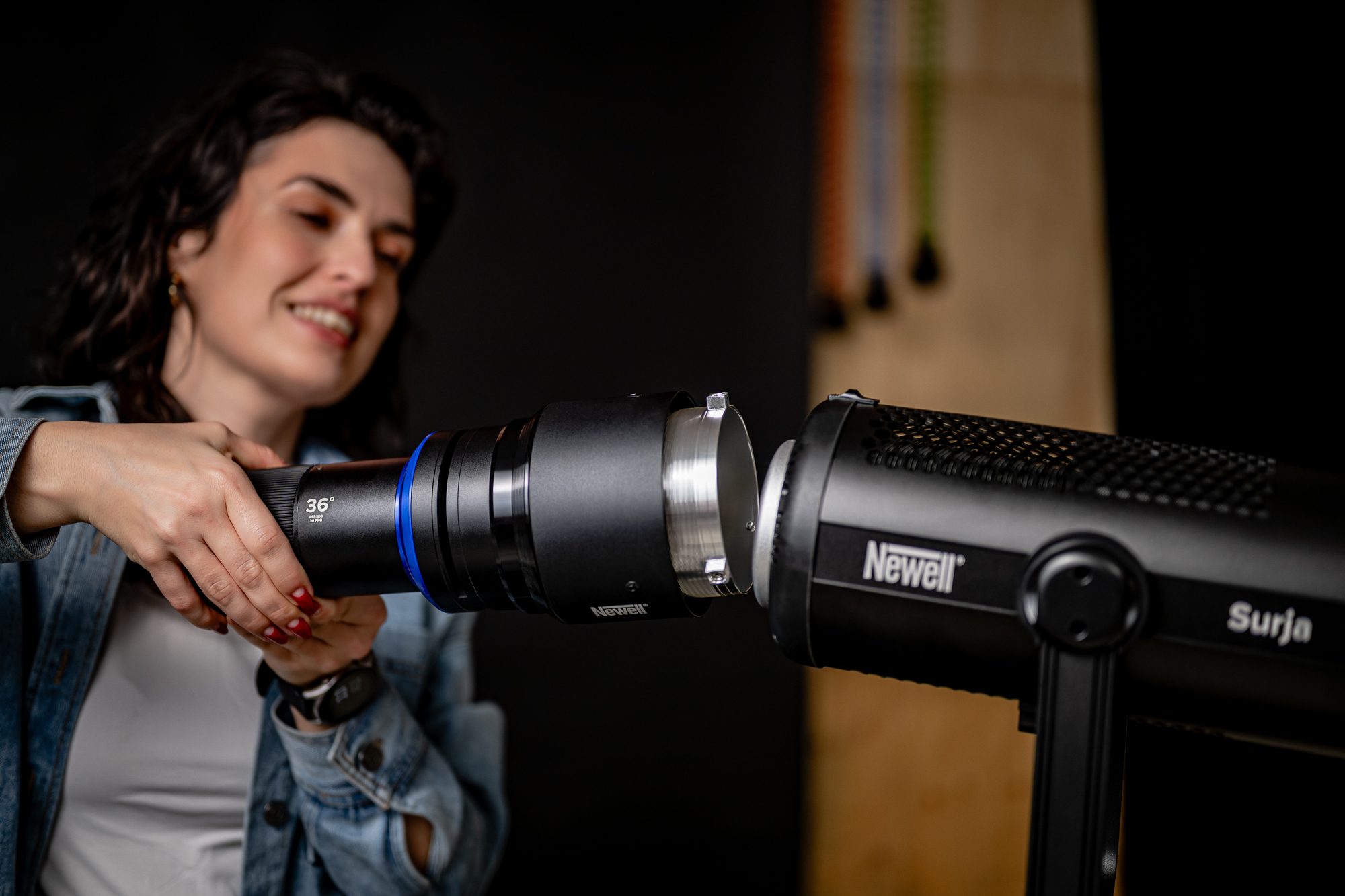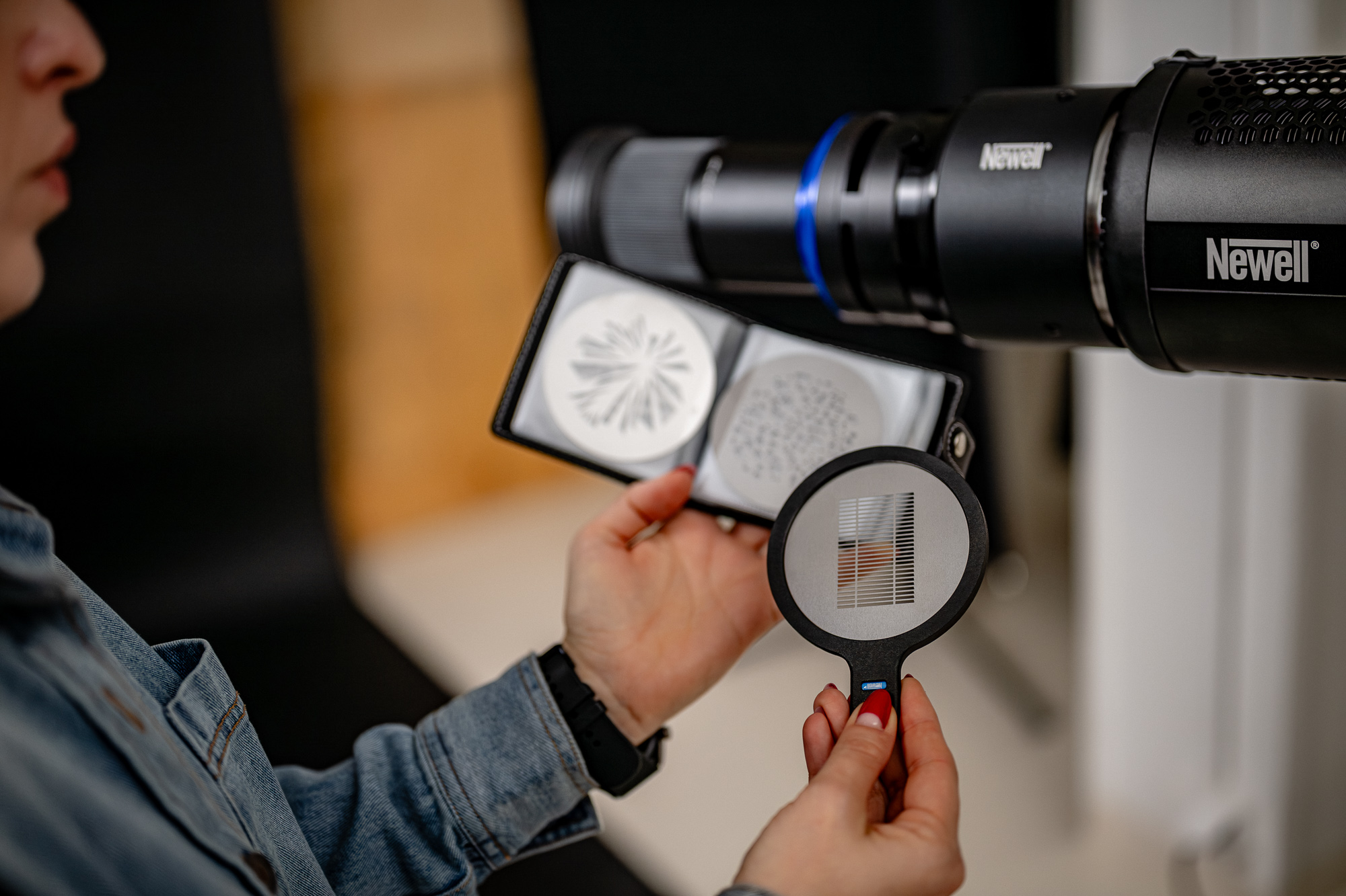 Jedną z najważniejszych nowości w modelu Newell Perseo-36 Pro są cztery zastawki, które pozwalają jeszcze dokładniej formować kształt plamy światła. Dzięki nim możesz przyciąć wiązkę z jednej lub kilku stron, ograniczyć wycieki światła na tło i skierować projekcję dokładnie tam, gdzie jest potrzebna. To niezwykle przydatne rozwiązanie m.in. w fotografii produktowej, portretach i ujęciach filmowych, gdzie liczy się pełna kontrola nad tym, co pozostaje oświetlone, a co ma zniknąć w cieniu. Zastawki pozwalają uzyskać bardziej teatralny, sceniczny i świadomie zaprojektowany efekt.