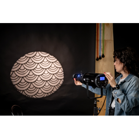 Filtry GOBO umożliwiają precyzyjne kształtowanie strumienia światła poprzez projekcję wybranych wzorów i kształtów. Sama nazwa pochodzi od angielskiego „goes before optics”, czyli „umieszczane przed optyką”. Metalowe płytki z wyciętymi wzorami montuje się wewnątrz strumienicy za pomocą dołączonego do zestawu magnetycznego uchwytu, aby tworzyć na planie unikalne refleksy, cienie i efekty wizualne. To rozwiązanie świetnie sprawdza się w fotografii artystycznej, filmach, vlogach, teatrze, sesjach modowych i wszędzie tam, gdzie światło ma budować klimat.