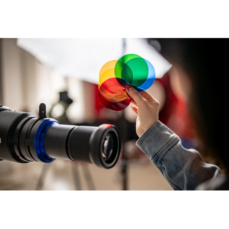 Do zestawu dołączono 5 kolorowych filtrów efektowych, które pozwalają szybko zmienić barwę światła i budować określony nastrój sceny bez konieczności sięgania po lampy RGB. To prosty, ale bardzo skuteczny sposób na dodanie kadrom charakteru. Kolorowe filtry dobrze sprawdzają się zarówno w fotografii portretowej i produktowej, jak i podczas pracy na planie filmowym.