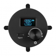 Urządzenie wyposażono w podświetlany ekran, który pozwoli kontrolować parametry światła nawet w całkowitych ciemnościach. Do nawigacji służy wielofunkcyjne pokrętło z wbudowanym przyciskiem, pozwalające na szybkie i precyzyjne sterowanie jasnością, temperaturą barwową czy efektami specjalnymi. Strumienicę Newell Perseo Mini można więc obsługiwać jedną ręką, bez zbędnego przeszukiwania menu czy sięgania po instrukcję.