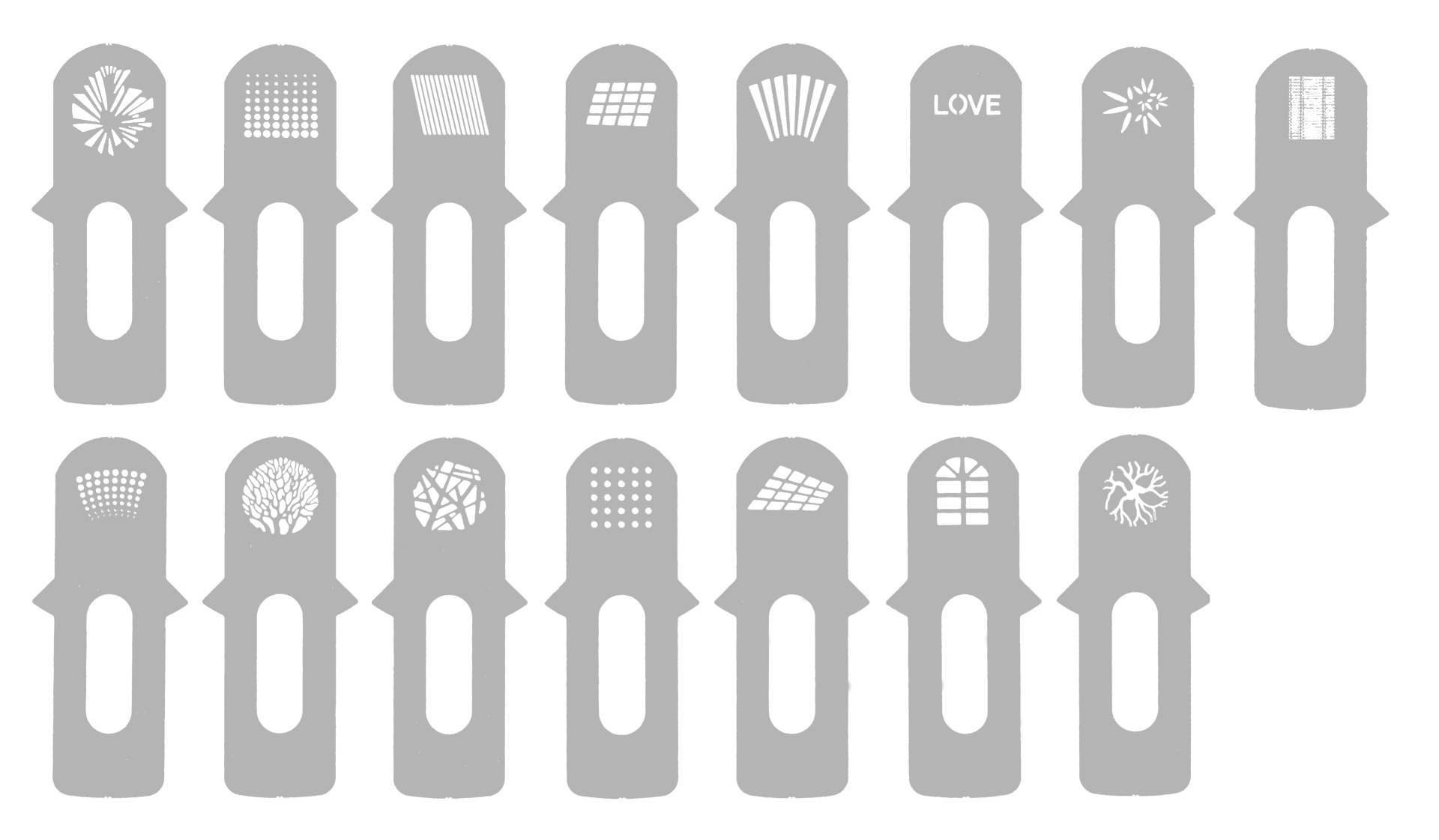 Strumienica Newell Perseo Mini obsługuje małe wymienne filtry GOBO. To niewielkie metalowe płytki z otworami tworzącymi różne kształty i wzory. W zestawie znajdziesz ich aż 15. Dostępne filtry obejmują motywy roślinne, ramy okienne, pęknięcia czy bardziej abstrakcyjne kompozycje składające się z linii lub kropek. Dzięki nim możesz tworzyć zróżnicowane, artystyczne efekty wizualne. Filtry GOBO to doskonały wybór m.in. do portretów, lookbooków, teledysków, rolek, czy vlogów.