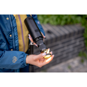 Strumienica Newell Perseo Mini została wyposażona w układ soczewek wzmacniających, który aż 16-krotnie zwiększa intensywność strumienia świetlnego, jakie generuje to 20-watowe urządzenie. Dzięki temu wiązka z łatwością przebija się przez ambientowe światło w pomieszczeniu lub oświetla wybrane fragmenty sceny. To idealny wybór do tworzenia punktowych akcentów świetlnych, podkreślania detali i budowania określonego klimatu Twoich zdjęć i filmów.