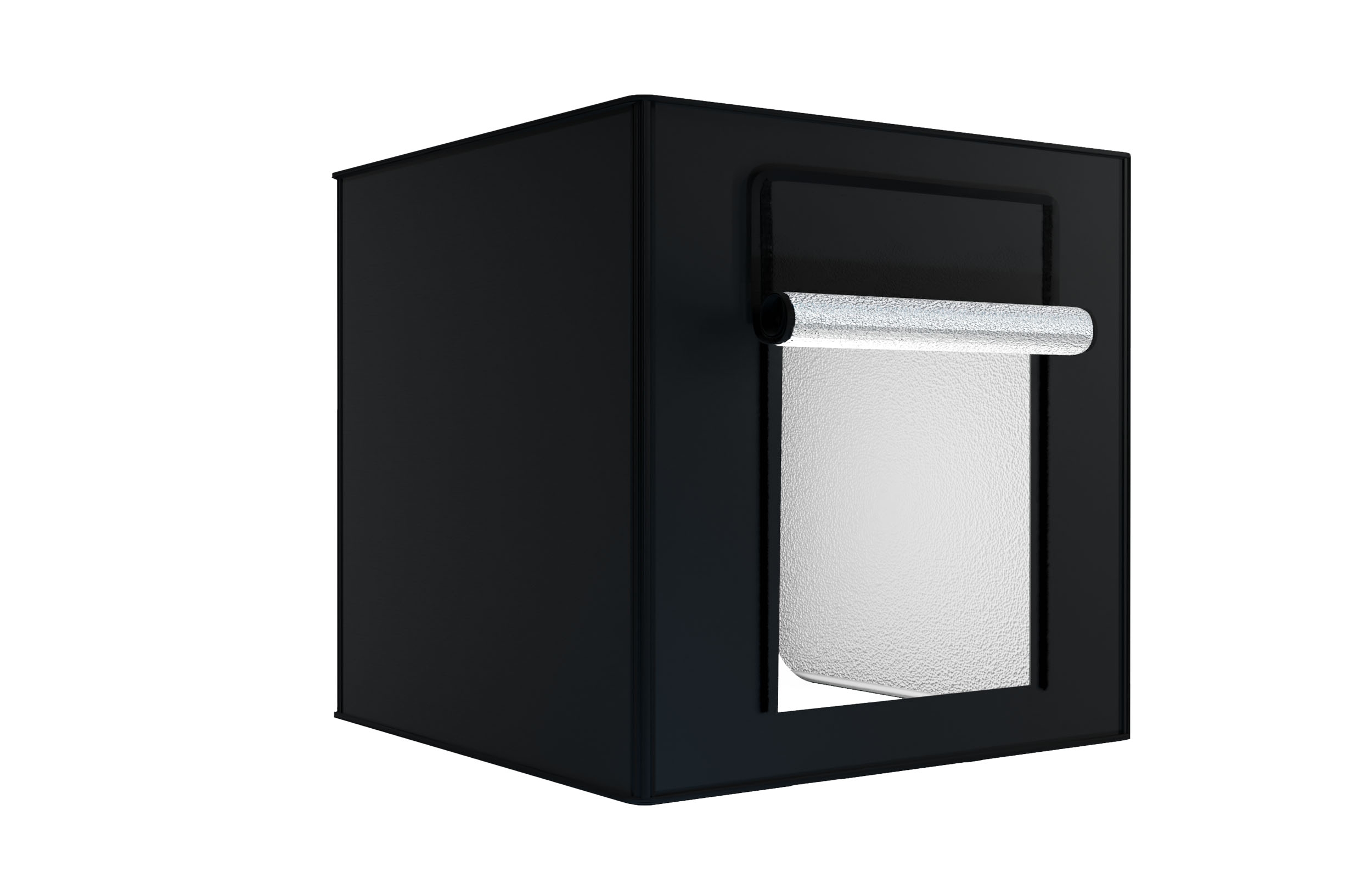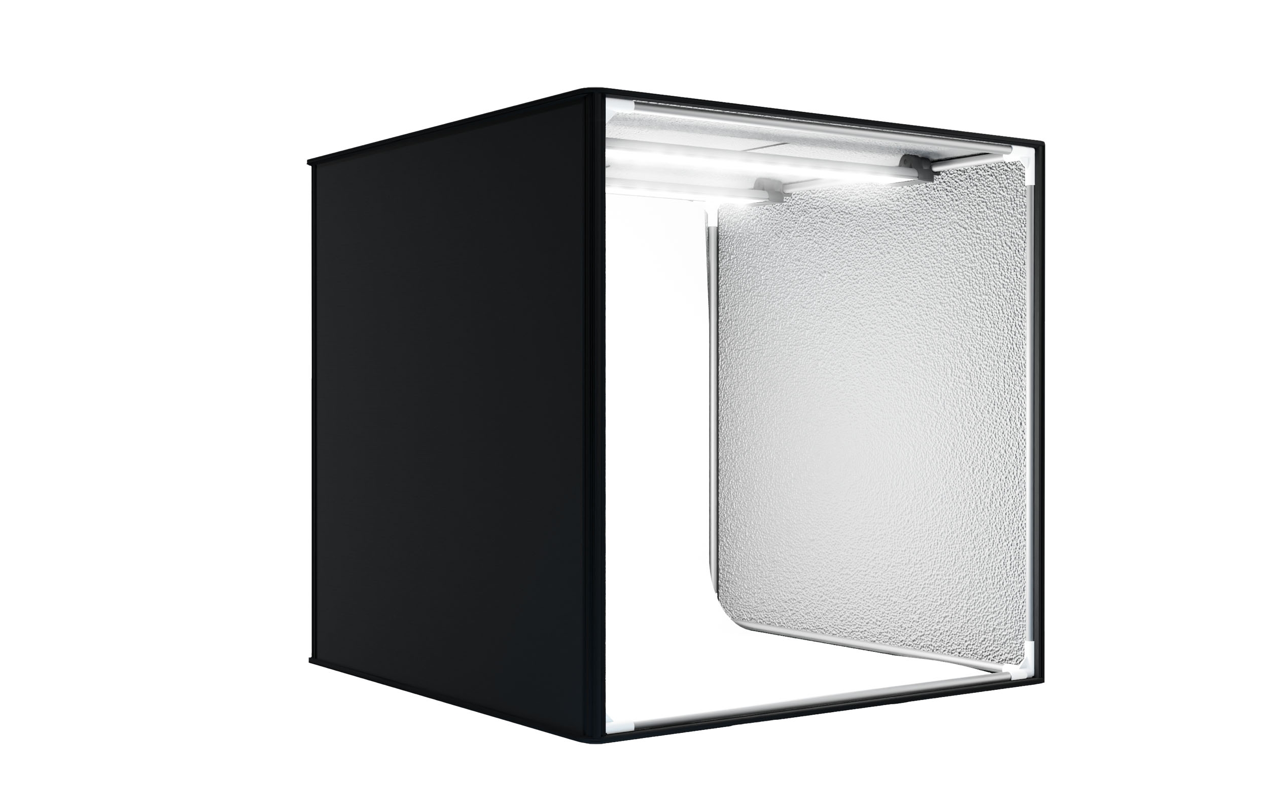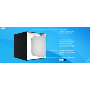 Namiot został wyposażony w dwa panele LED, których pozycję można regulować, w celu osiągnięcia różnych setupów oświetleniowych. Jego wnętrze zostało pokryte specjalnym materiałem, który równomiernie rozprowadza generowane przez lampy światło. Dzięki temu skutecznie wyeliminujesz cienie ze swoich zdjęć produktowych. Specjalny dyfuzor pozwala uzyskać efekt rozproszonego, miękkiego światła, redukując przy tym powstawanie odblasków oraz odbić na fotografowanym produkcie.