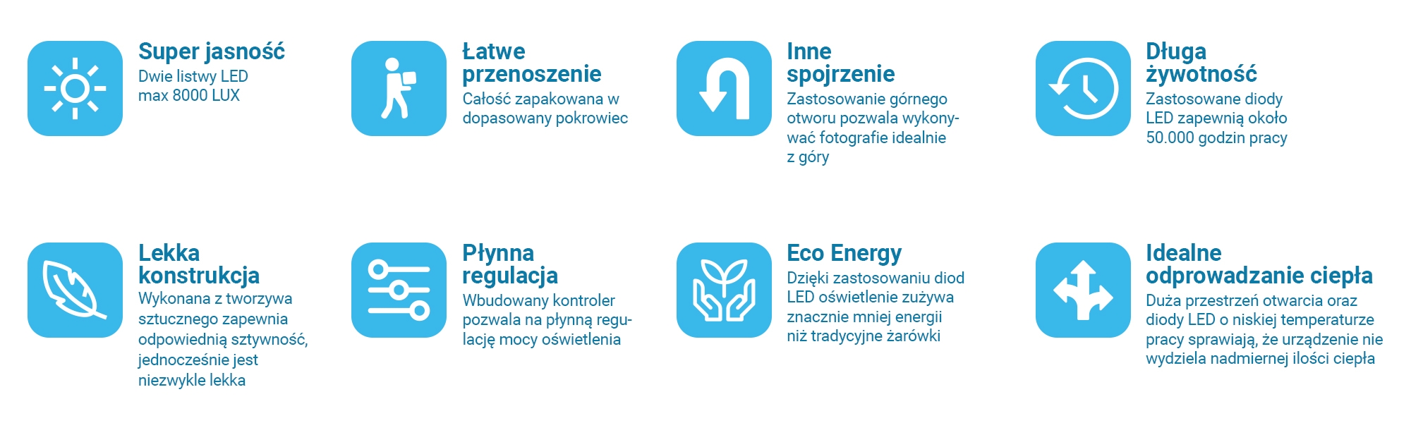 - dyfuzor pozwalający dodatkowo rozporszyć i zmiękczyć światło